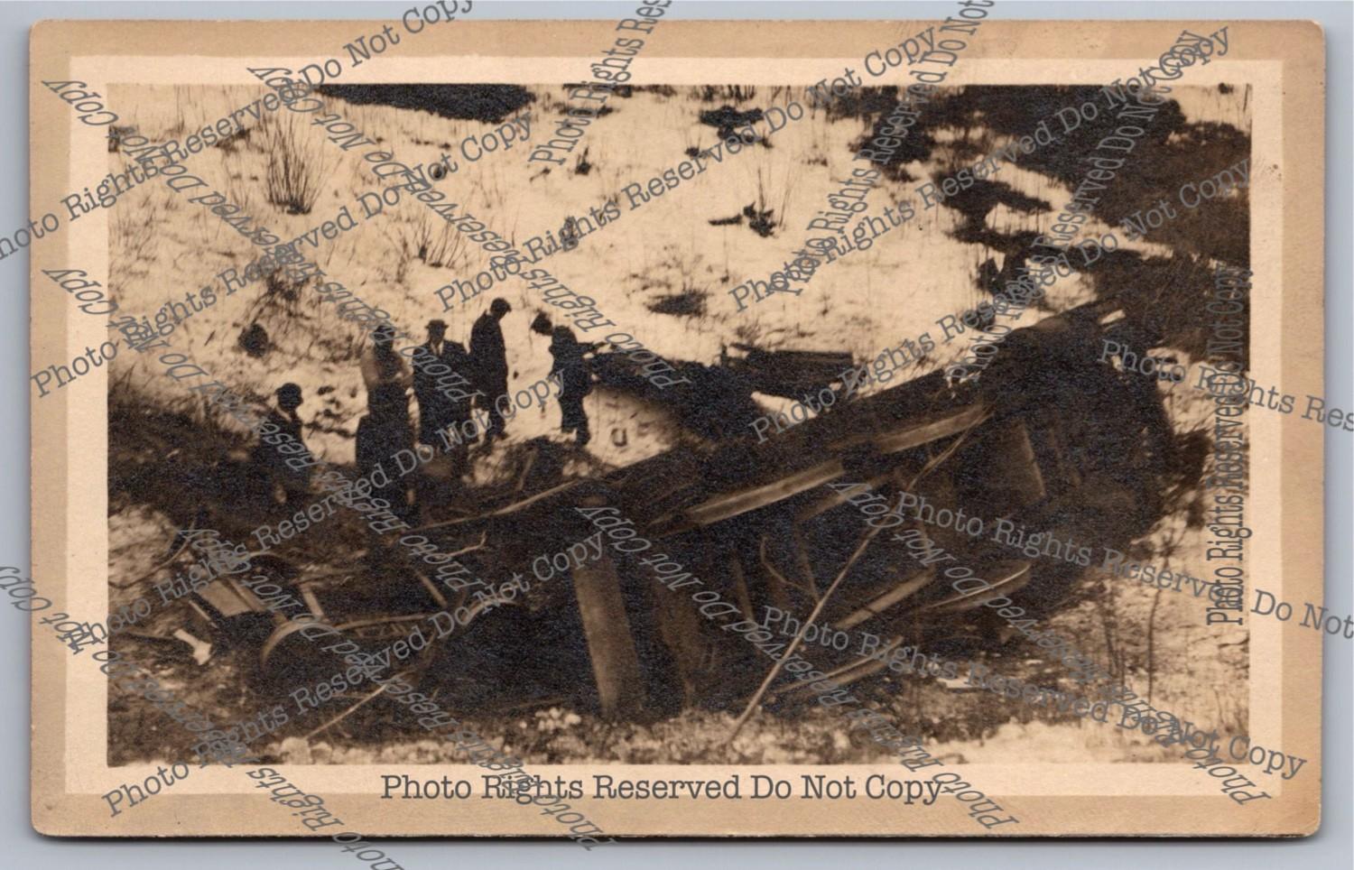 Antique RPPC Steam Locomotive Wrect Roll Over Snow Hill Real Photo Postcard