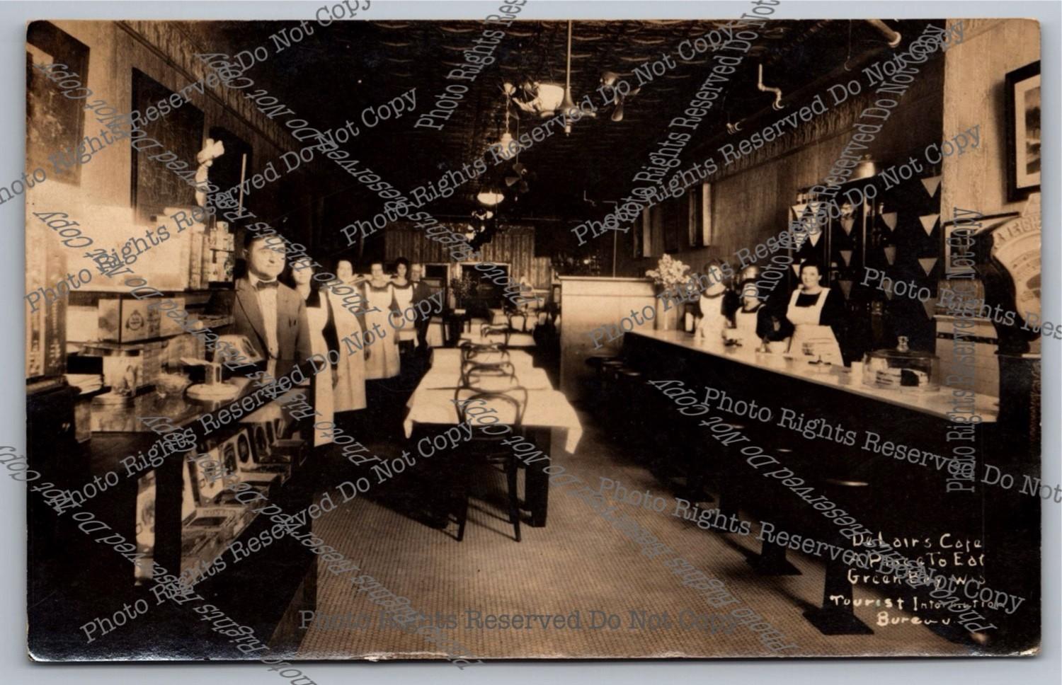 Antique RPPC 1923 De Lair's Cafe Green Bay Wisconsin Staff Real Photo Postcard