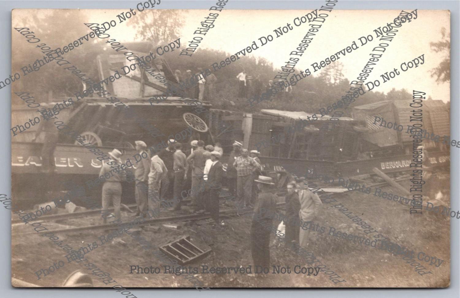 1928 RPPC Farmington NH Bernardi Greater Rail Train Wreck Real Photo Postcard