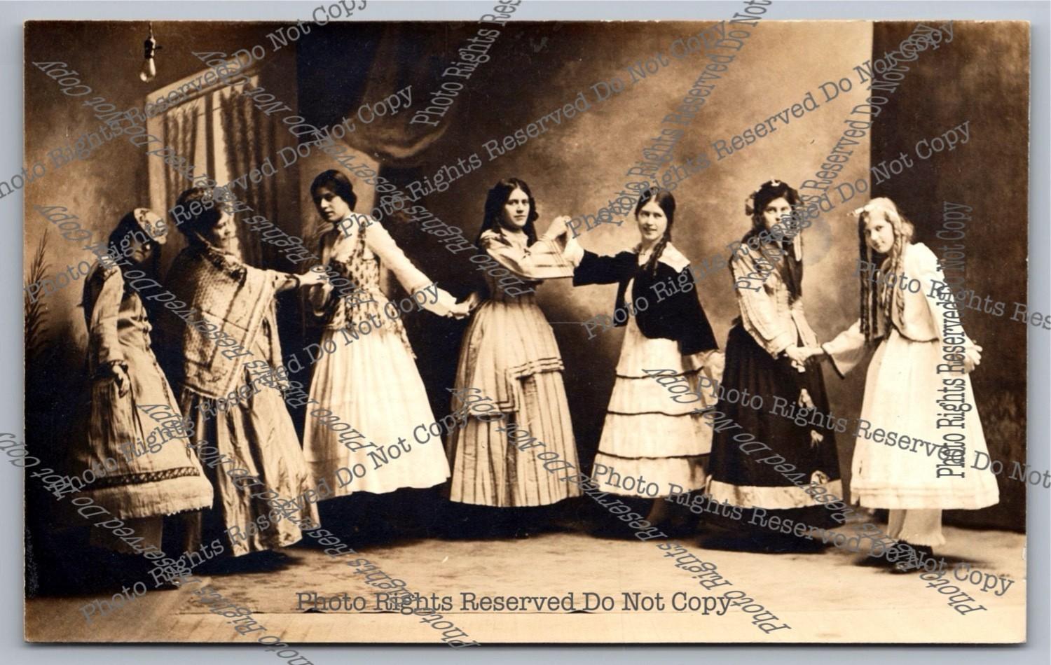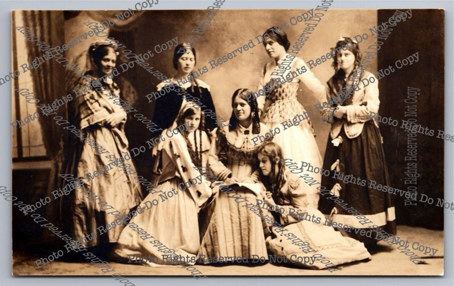 Antique RPPC 7 Women Pose Studio? Actors Stage?Sisters? Real Photo Postcard 2/3