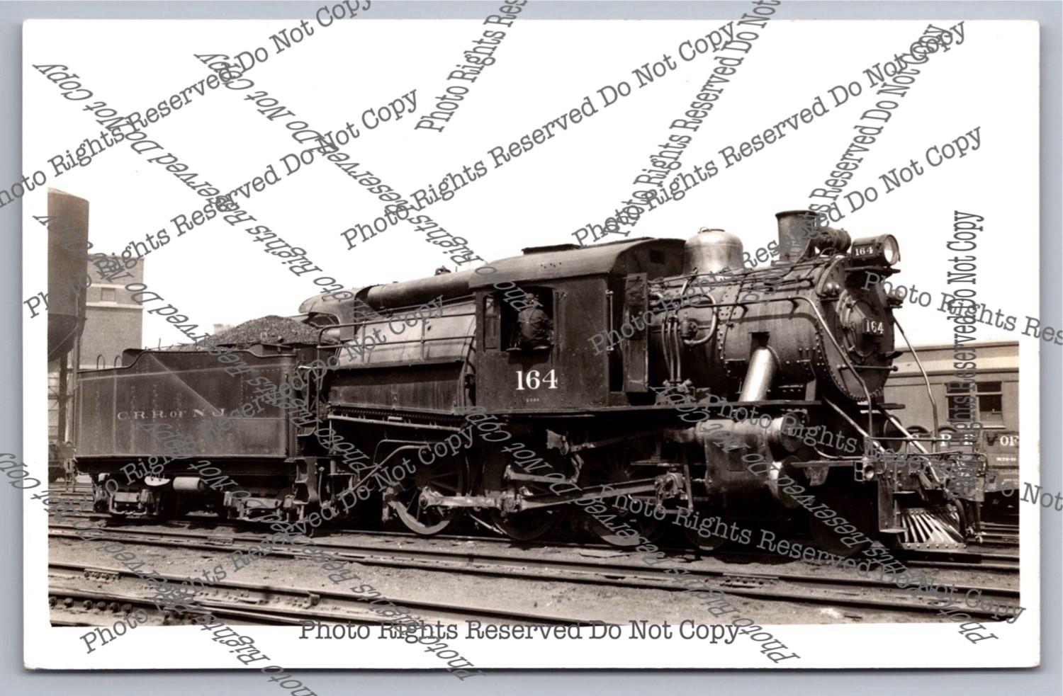 1948 RPPC Central Railroad New Jersery Steam Locomotive 164 Real Photo Postcard