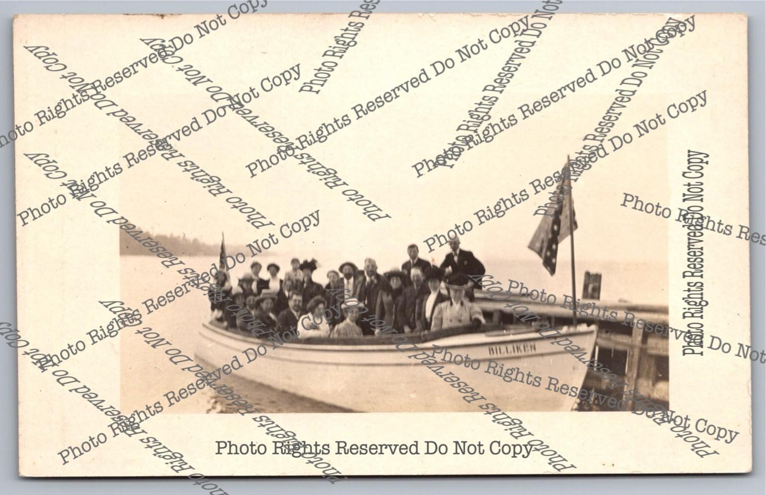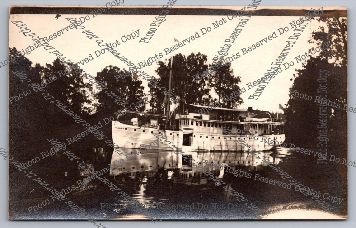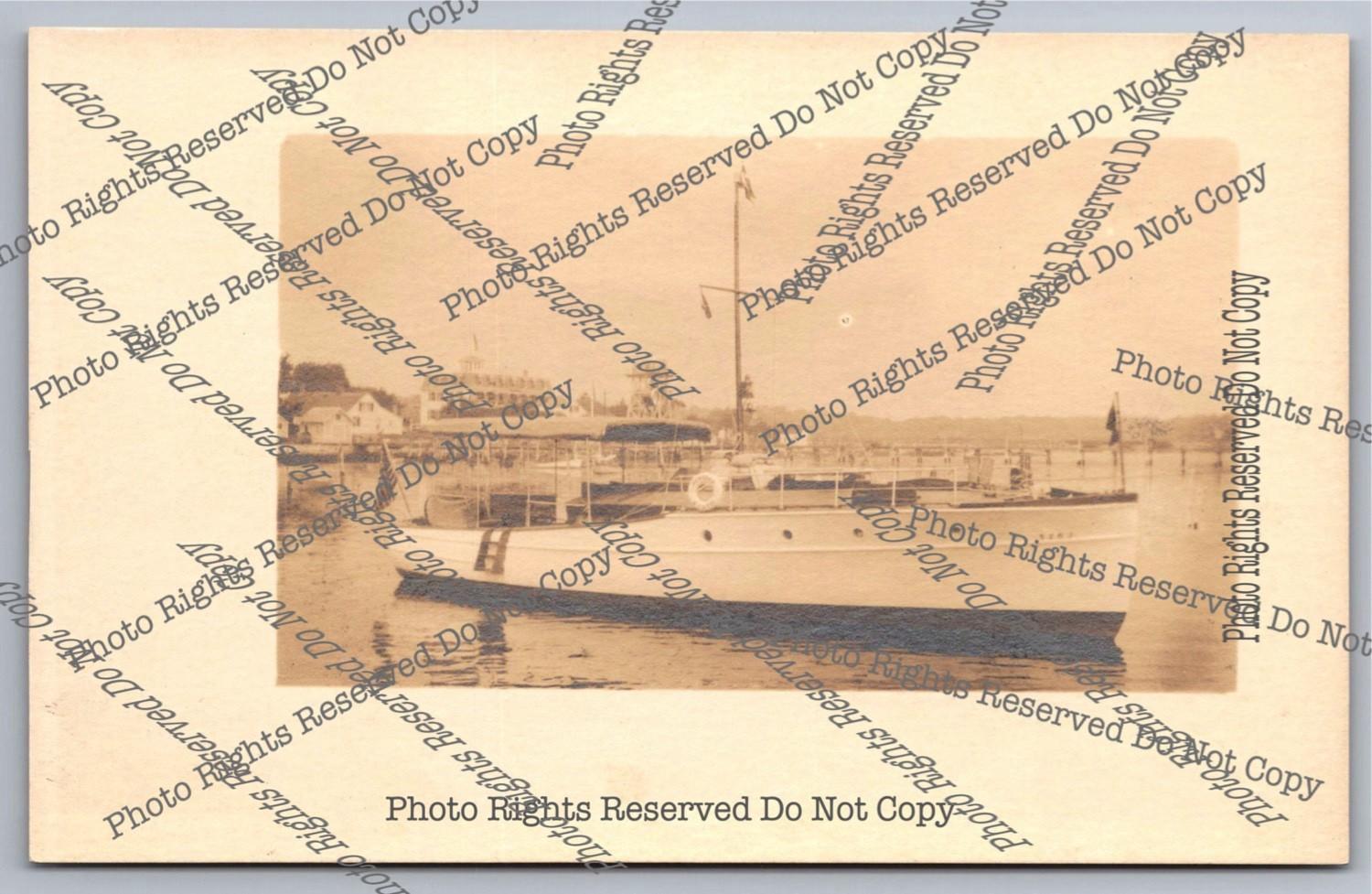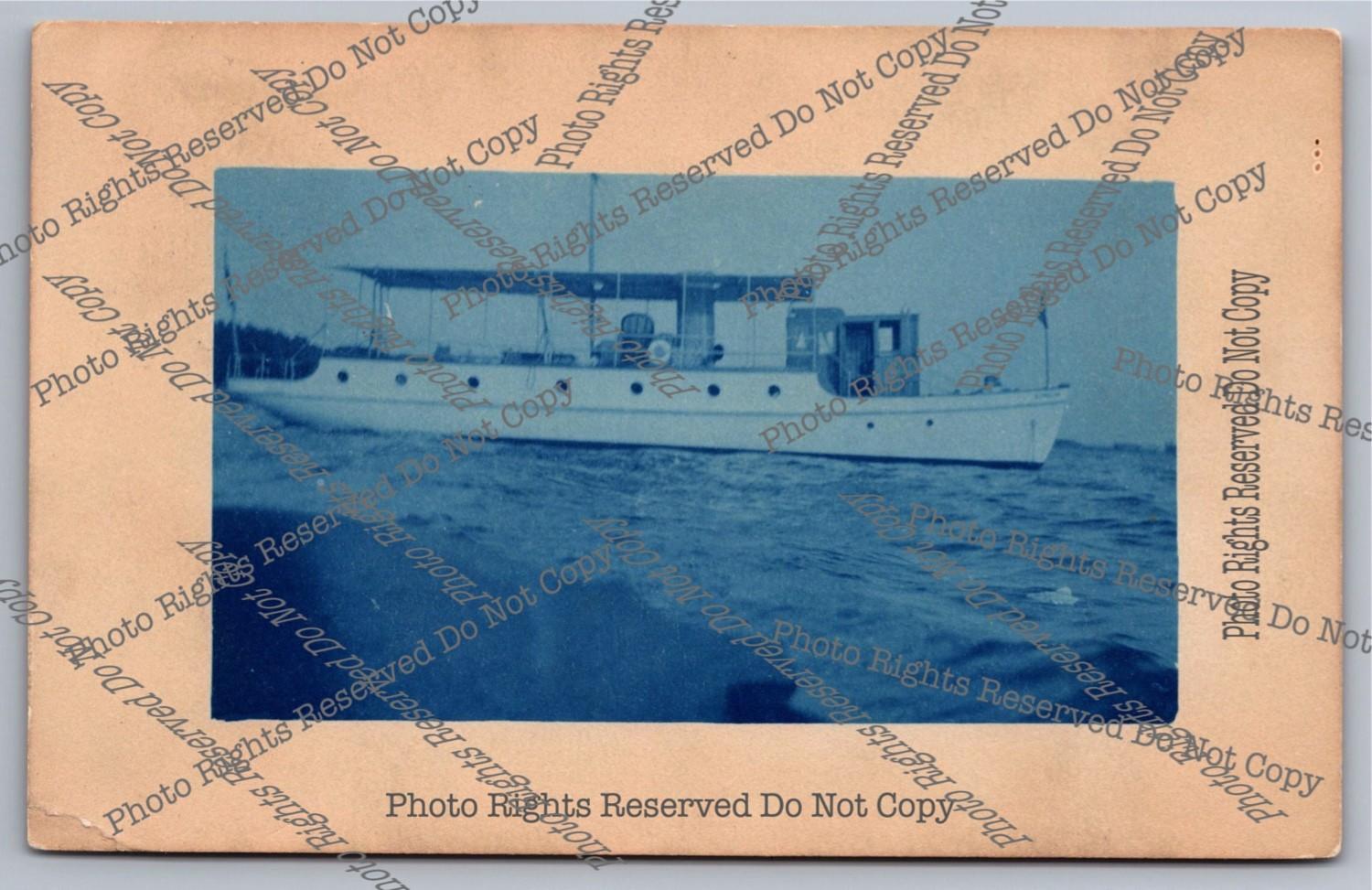 Antique 1913 cyanotype RPPC Large White Pleasure Boat Real Photo Postcard