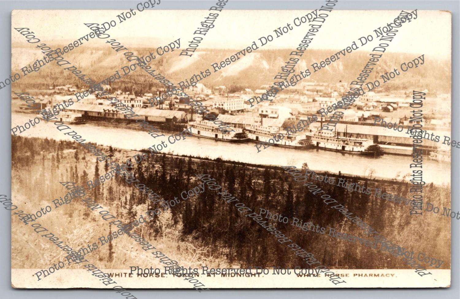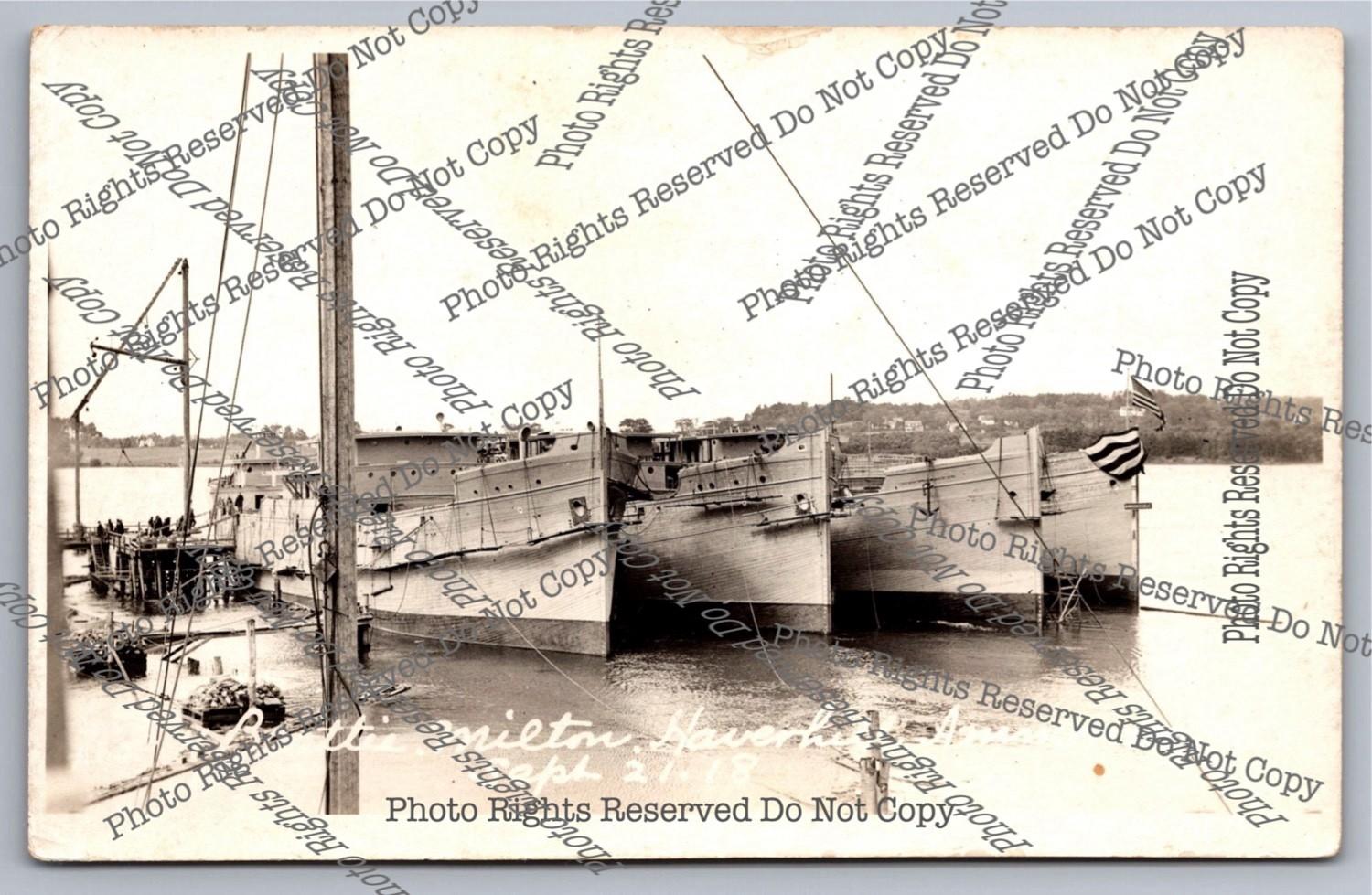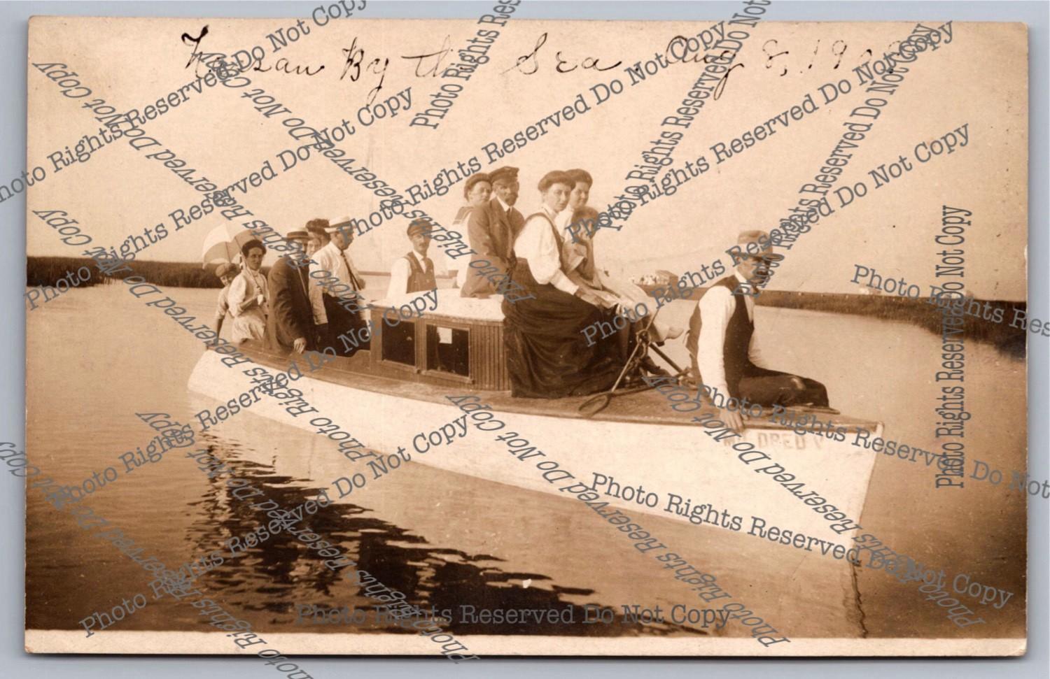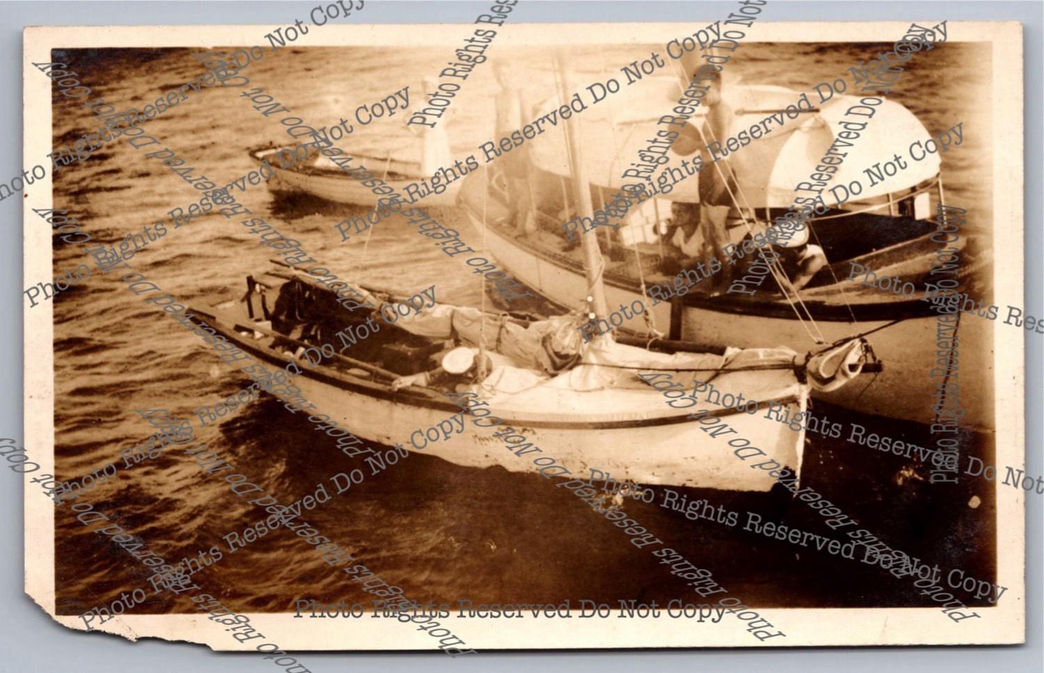 Antique 1913 cyanotype RPPC Large White Pleasure Boat Real Photo Postcard