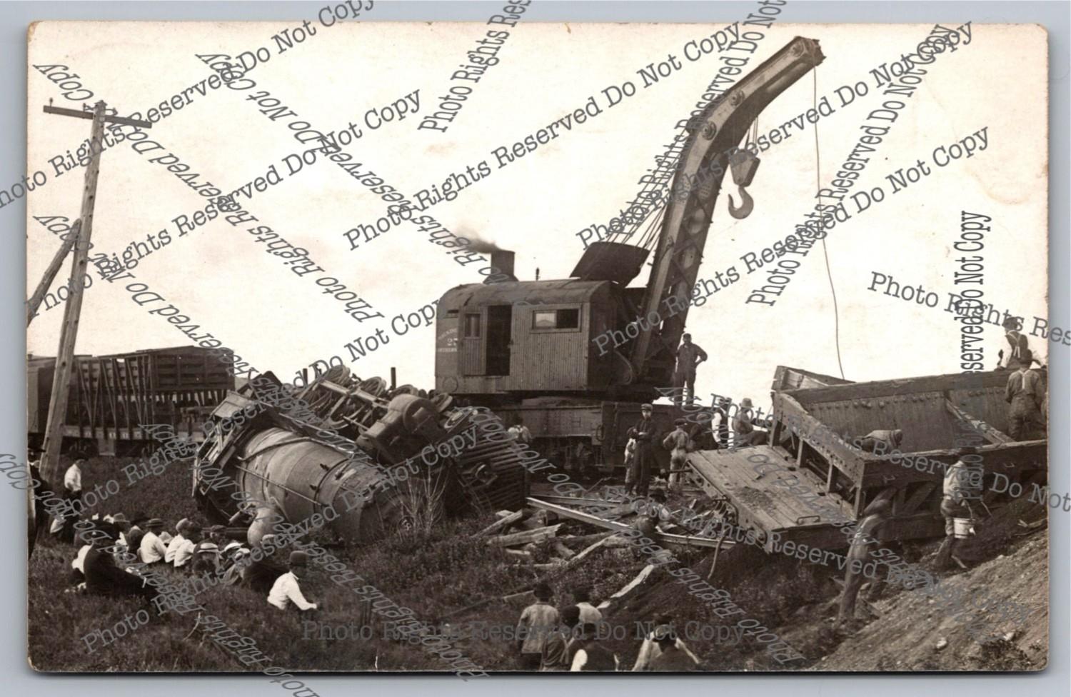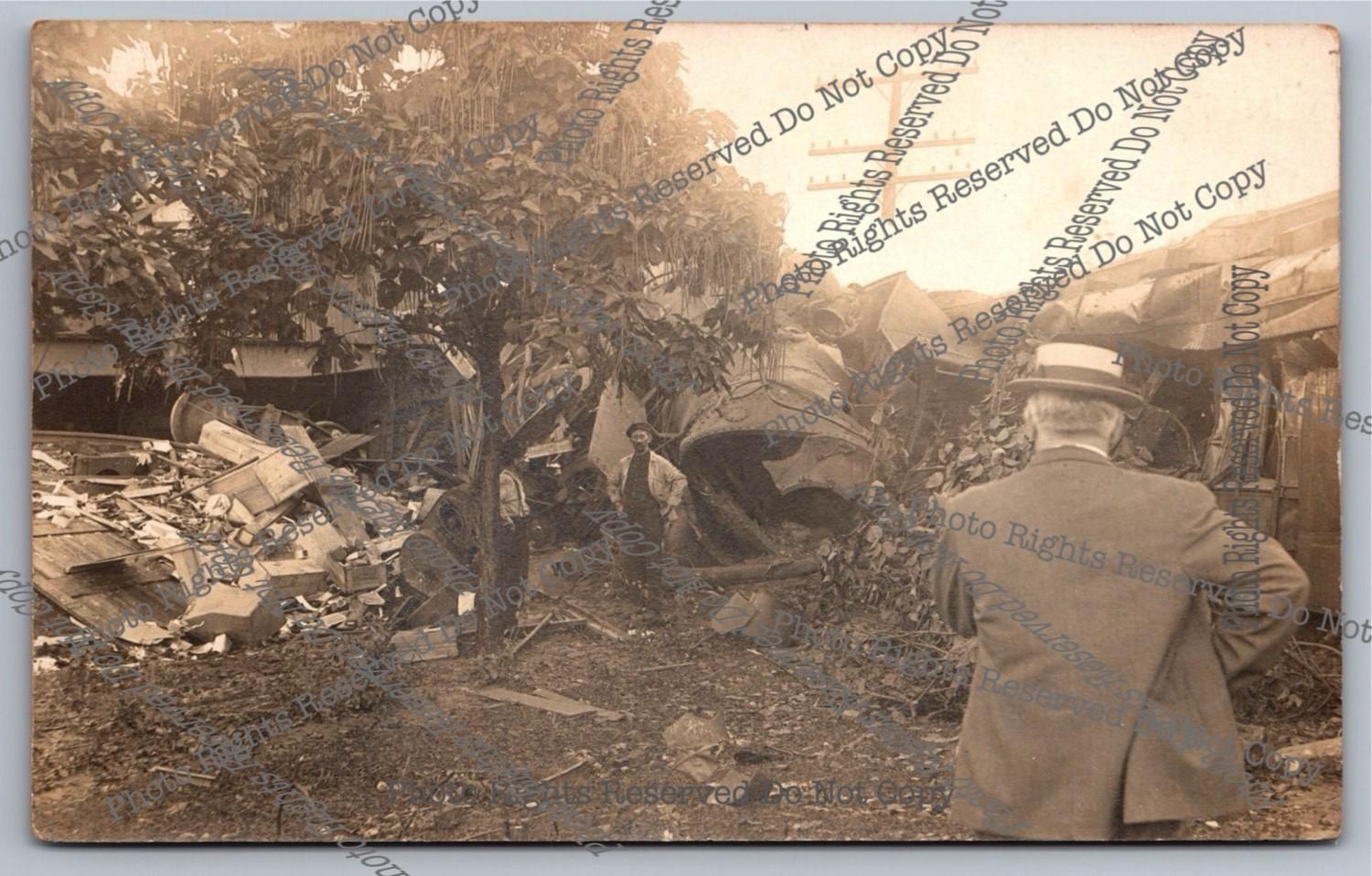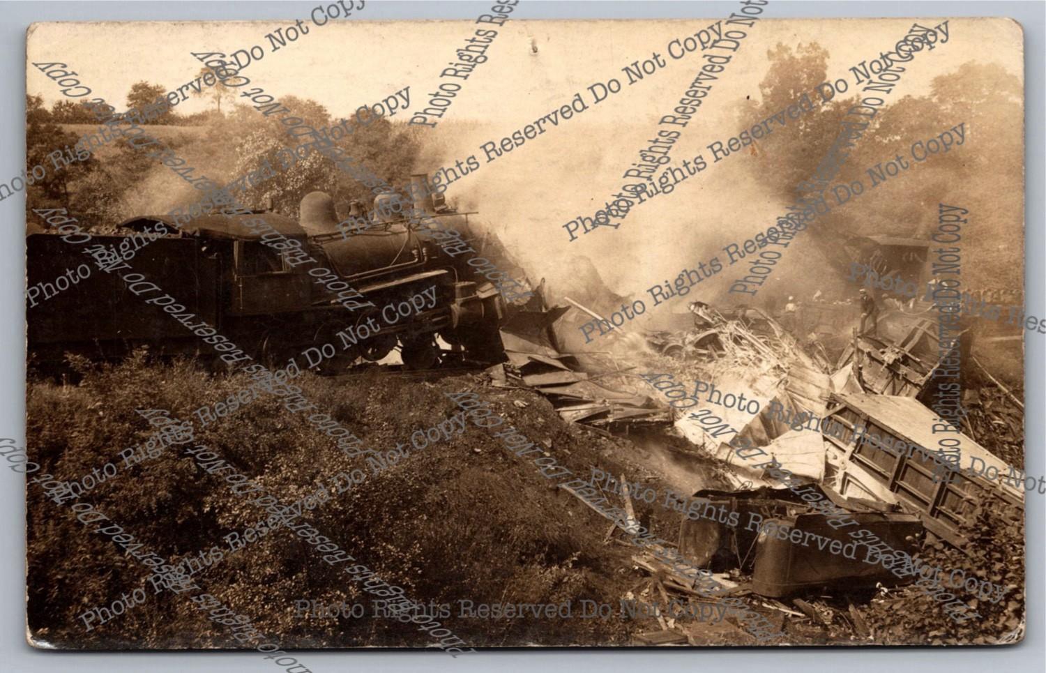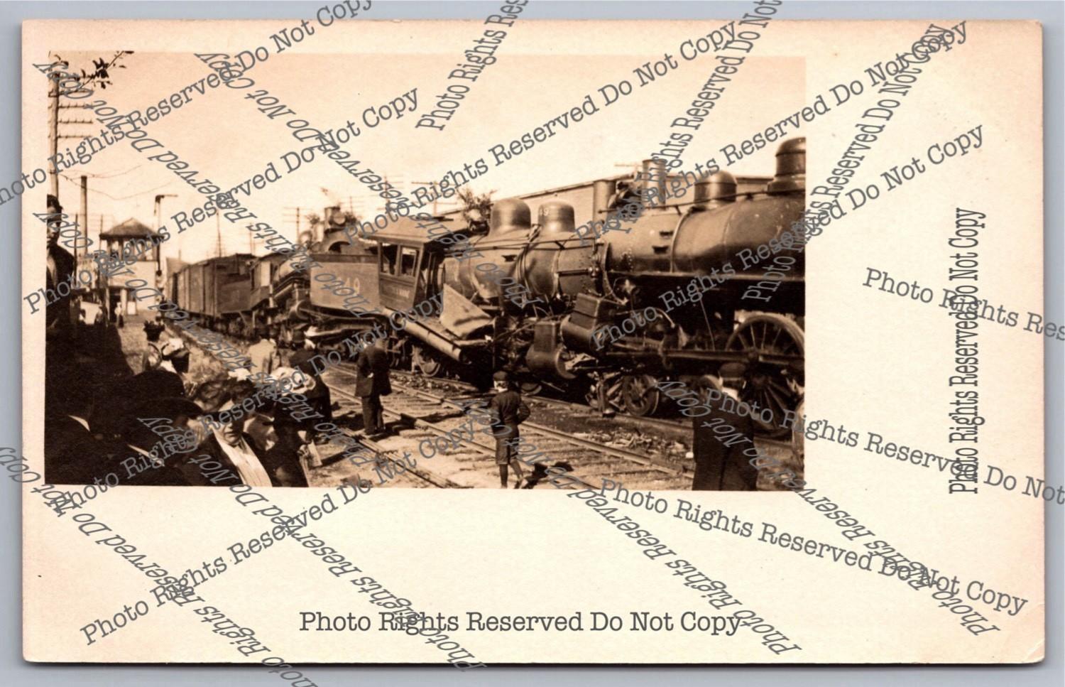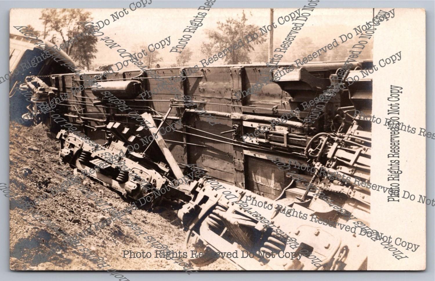 Antique 1916 RPPC Train Wreck South of Freight Depot Real Photo Postcard