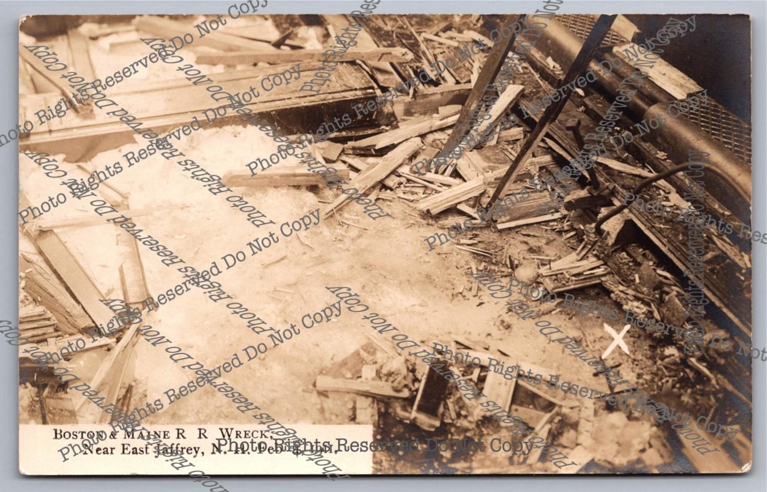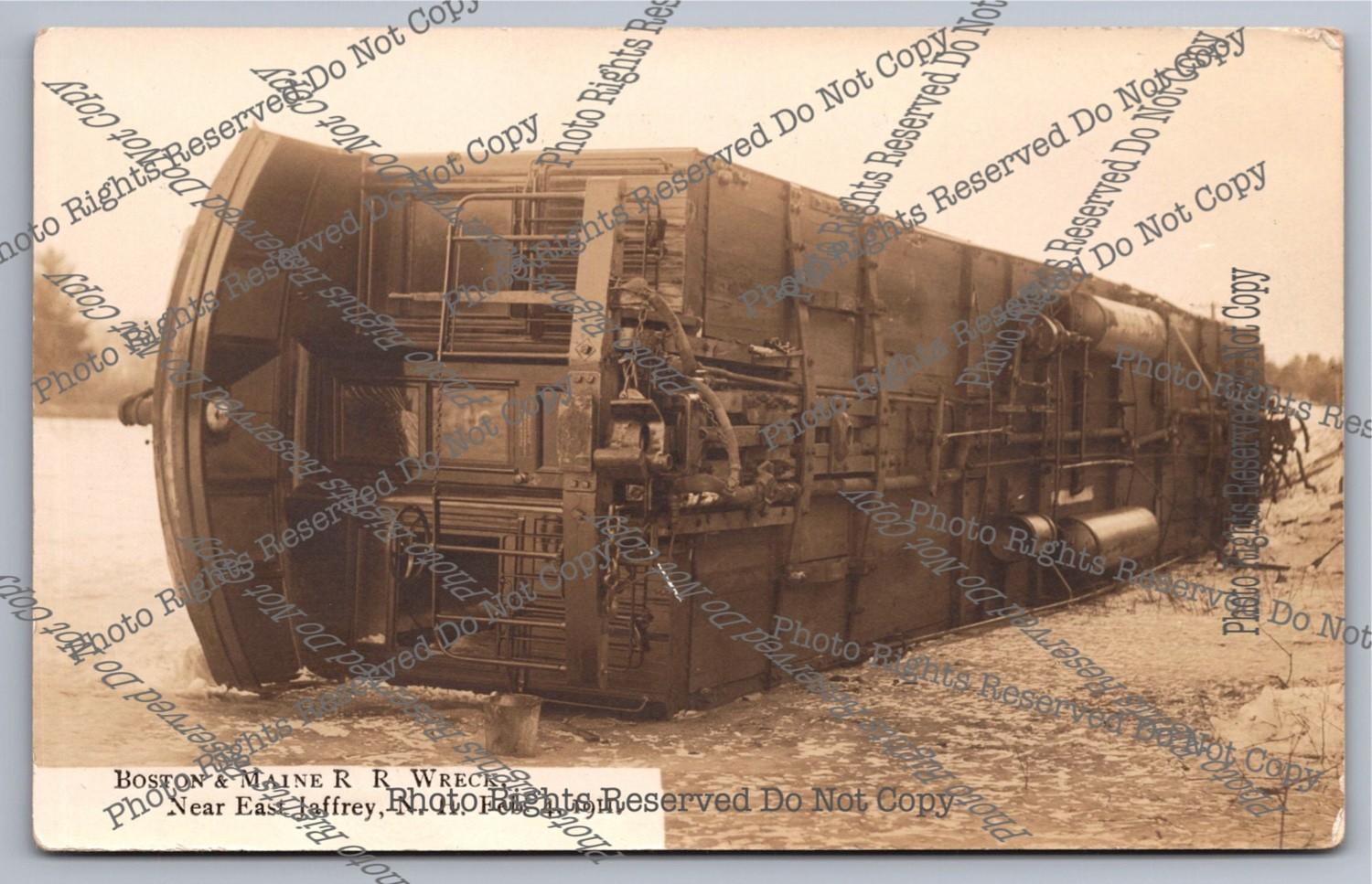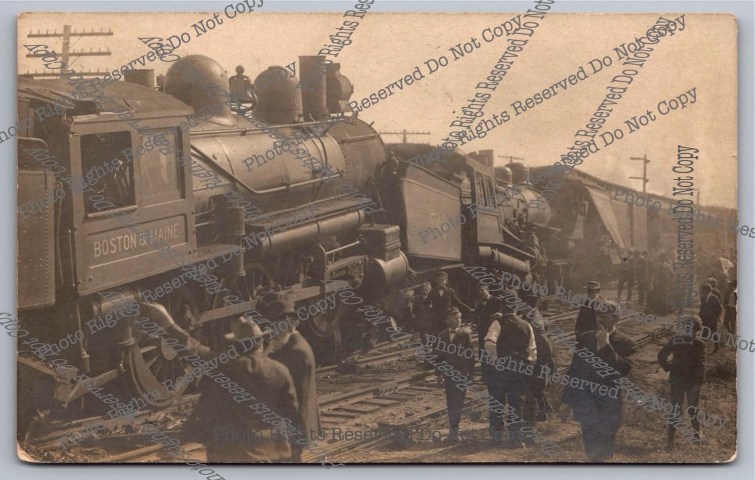 Antique 1911 RPPC Boston&Maine Railroad Wreck Jaffrey NH Real Photo Postcard