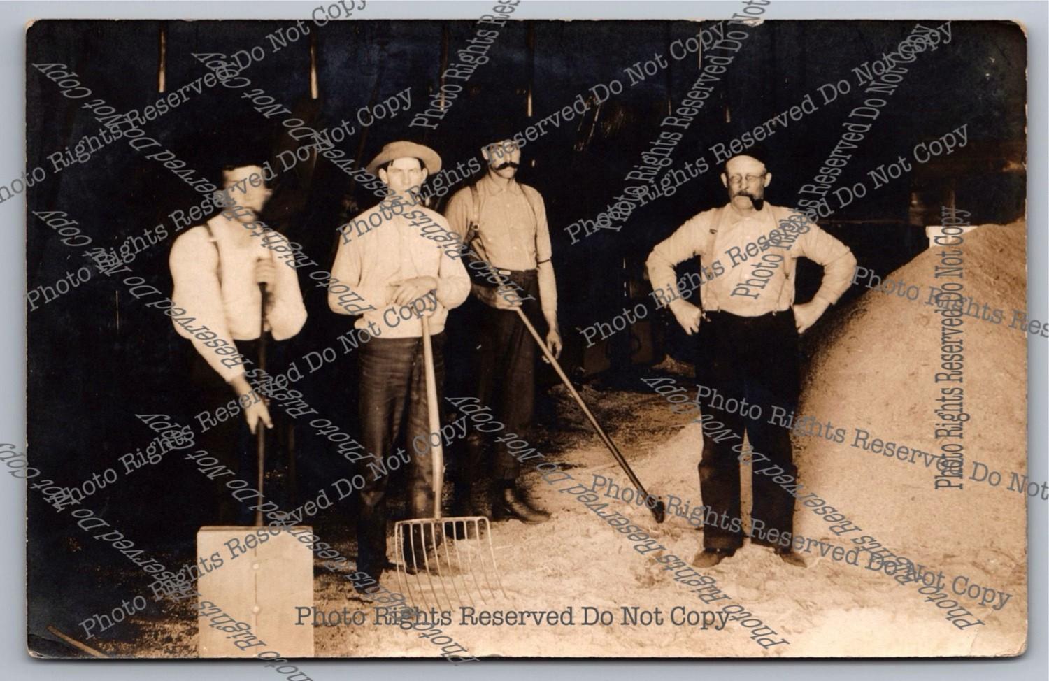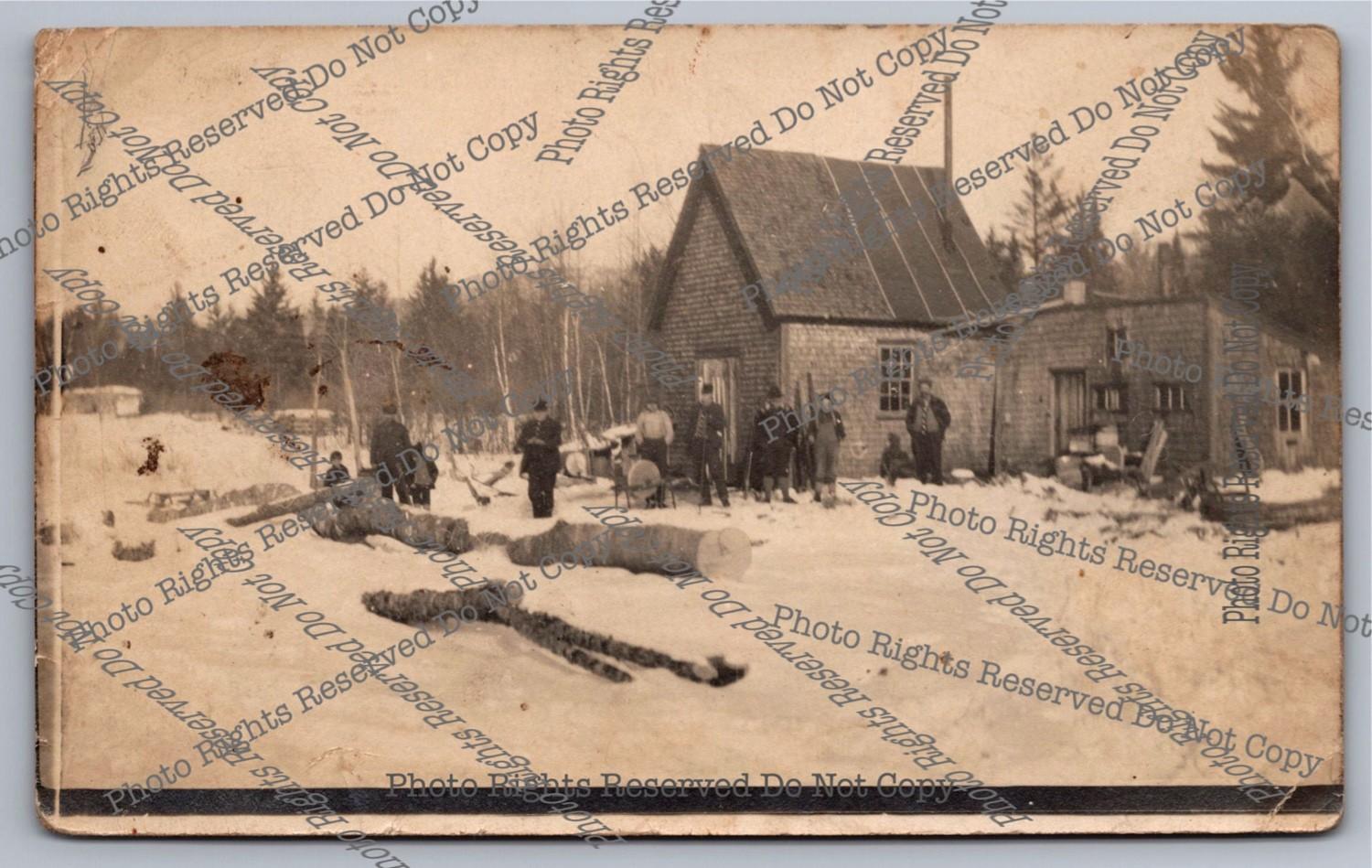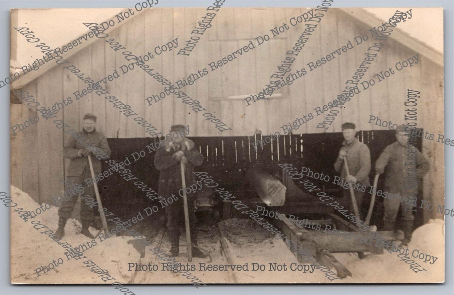Antique RPPC Men Working Snowy Sawmill Real Photo Postcard
