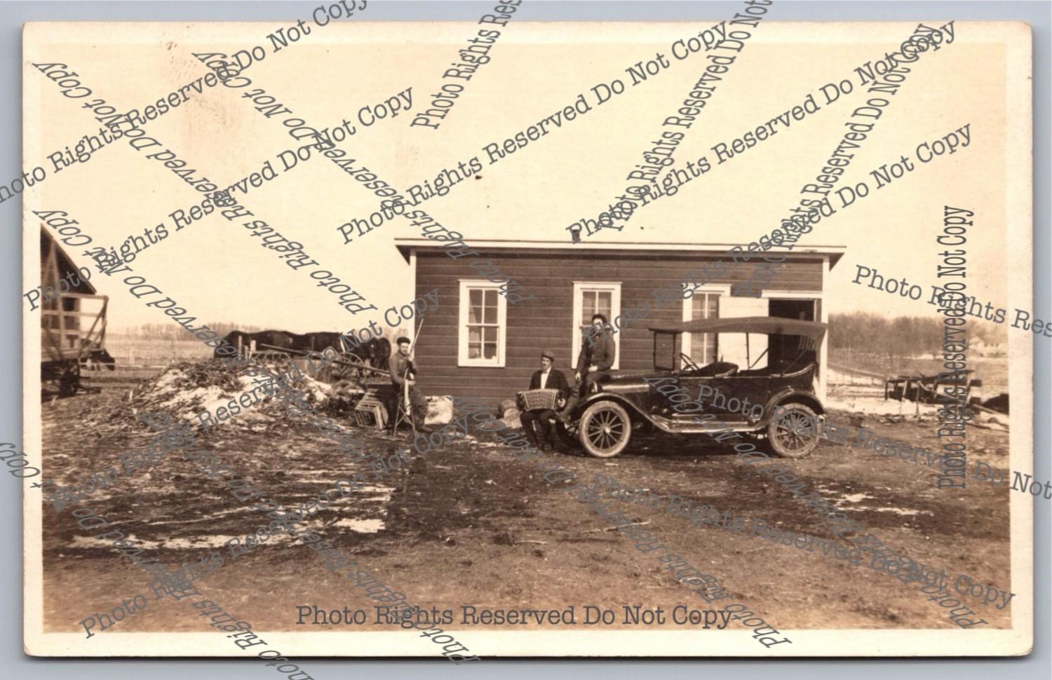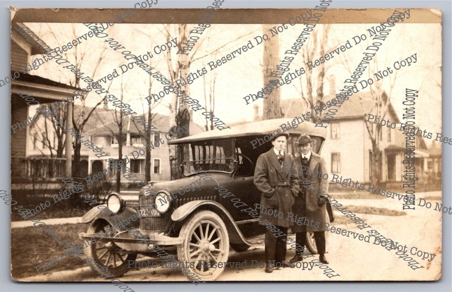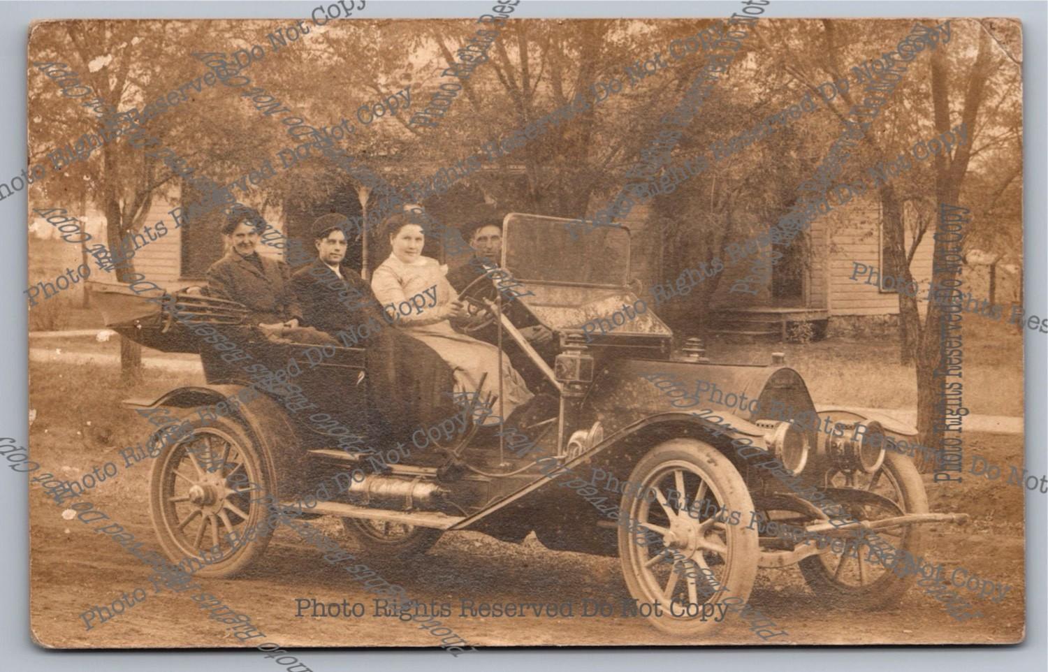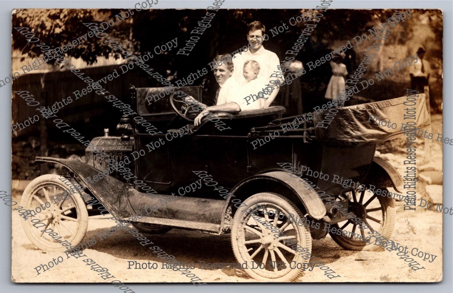 Antique RPPC Family Showing 1916 Ford Model T Michigan? Plate Real Photo Postcar