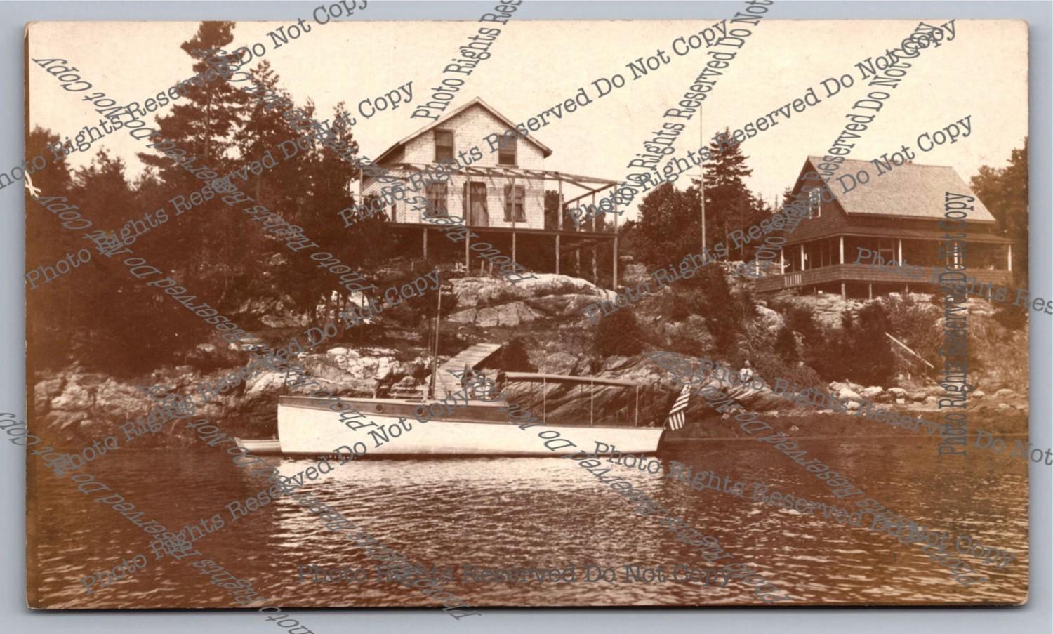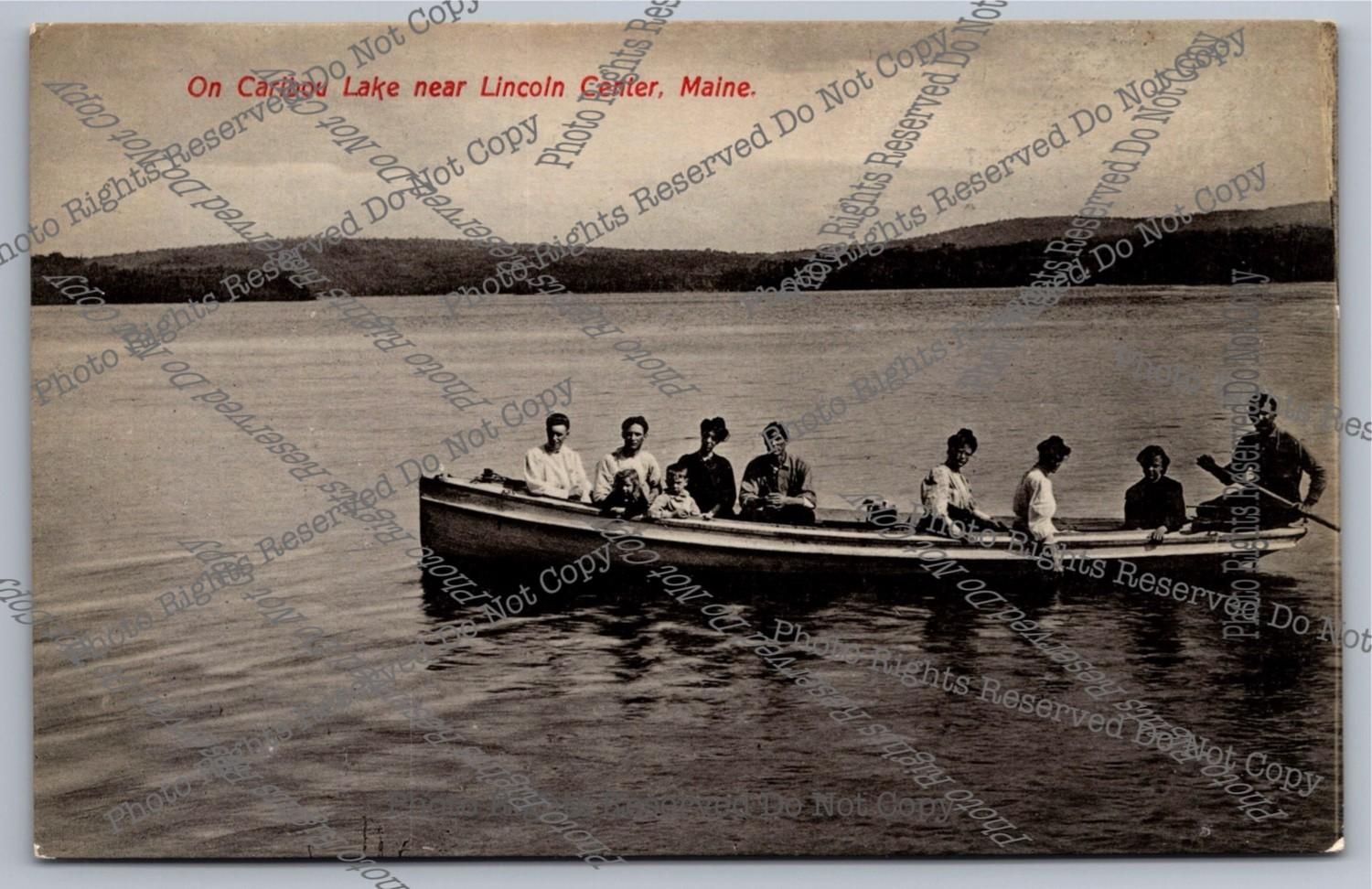 Antique RPPC Boating on Caribou Lake Lincoln Center Maine Real Photo Postcard