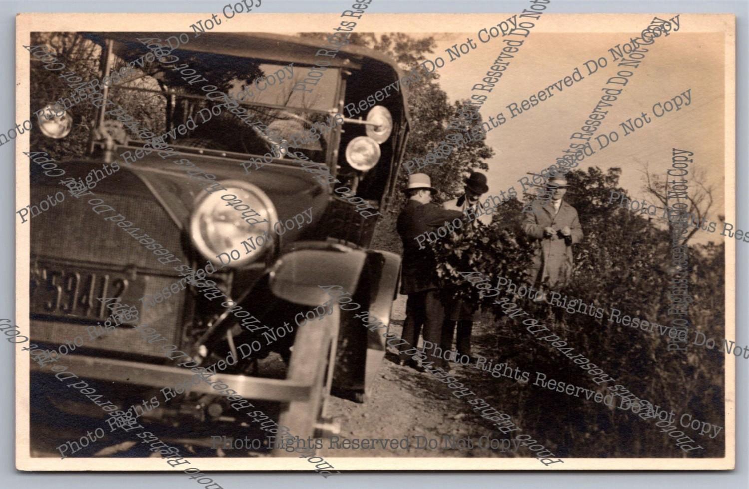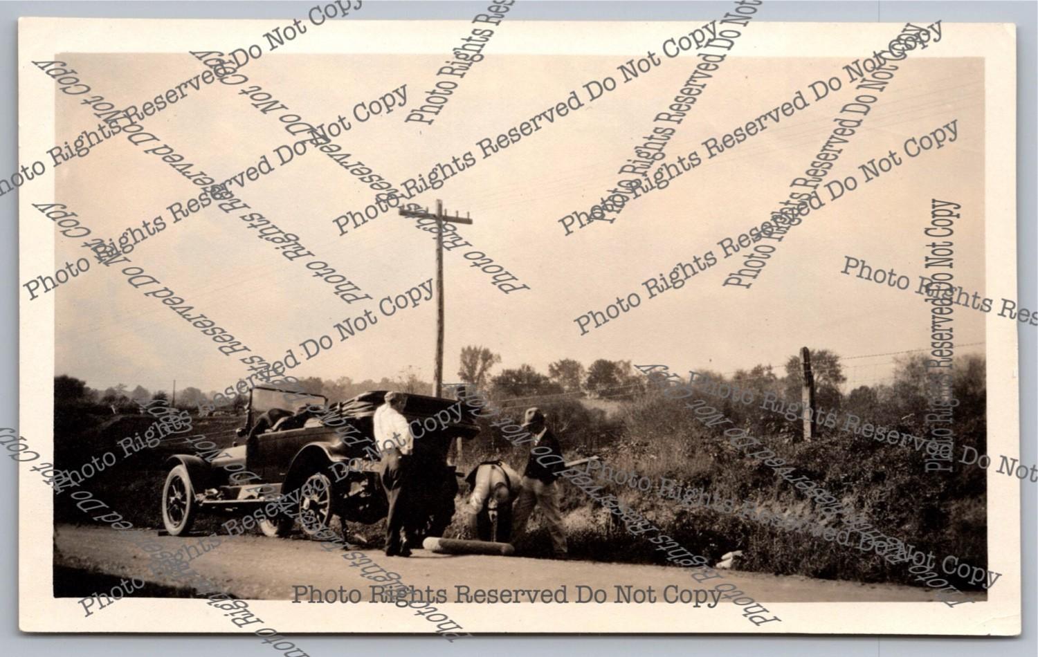 Antique RPPC 1915 Changing Flat TIre Roadside Columbus Ohio Real Photo Postcard