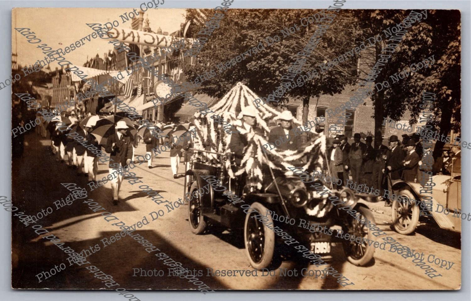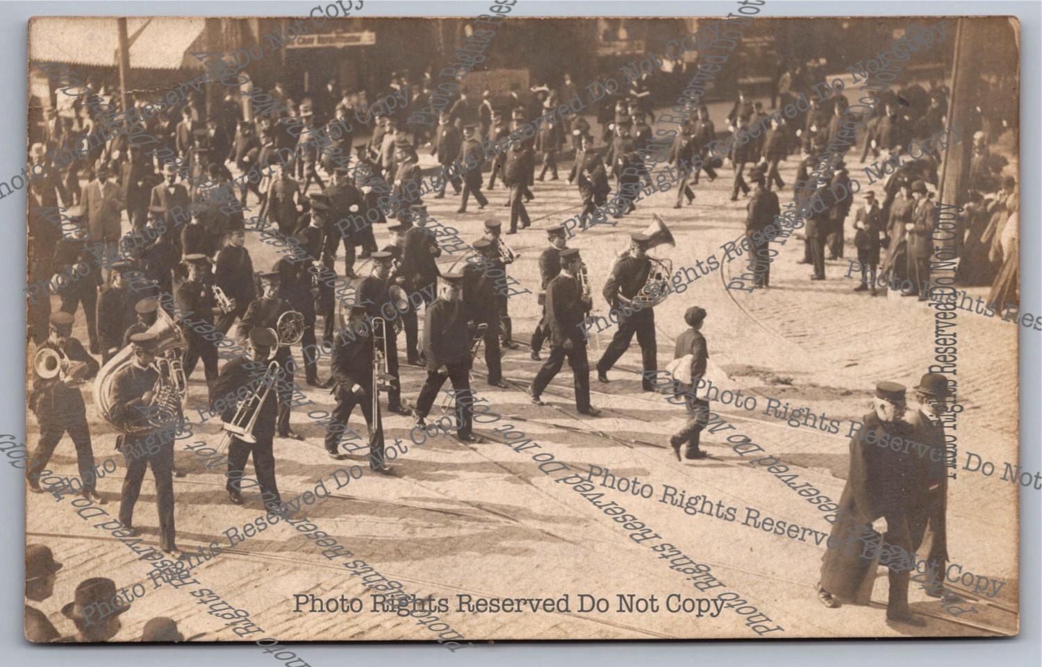 Antique 1920 RPPC 5-Man Band Parade Float Astoria Oregon Real Photo Postcard