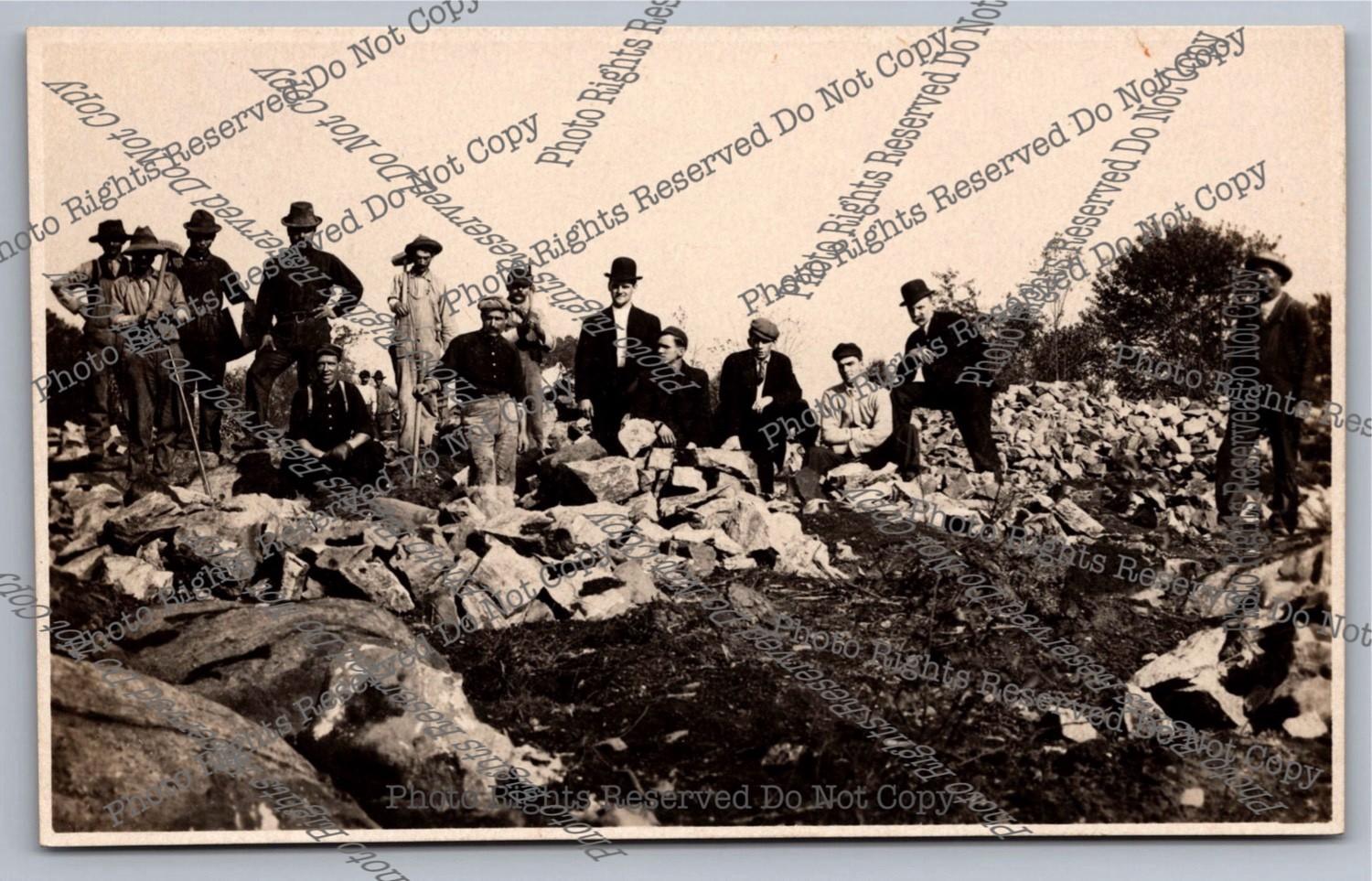 Antique 1909 RPPC Miners&Suits Pose Very Rocky Field Real Photo Postcard