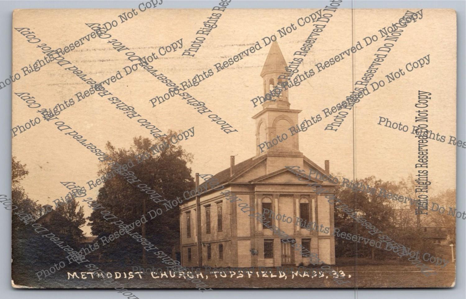 Antique 1922 RPPC Methodist Church Topsfield Massachusetts Real Photo Postcard