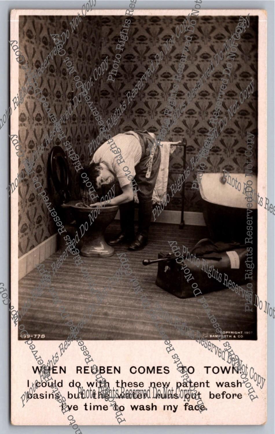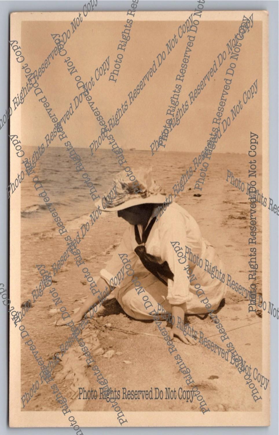 Antique RPPC real photo postcard Young Woman Drinking at Rural Well Sweep Bucket