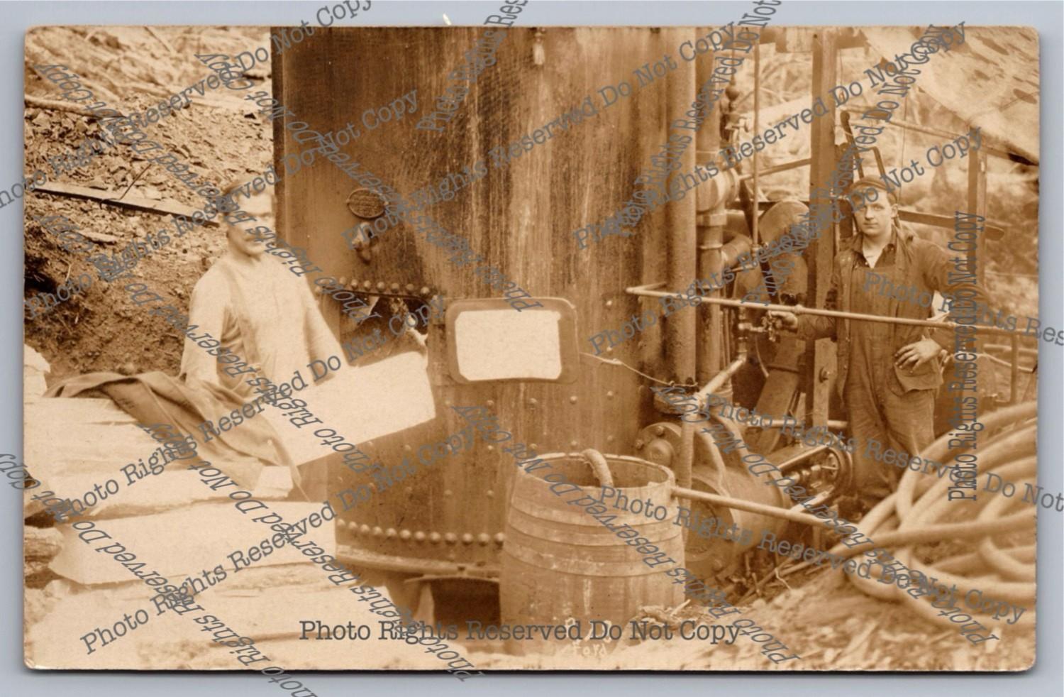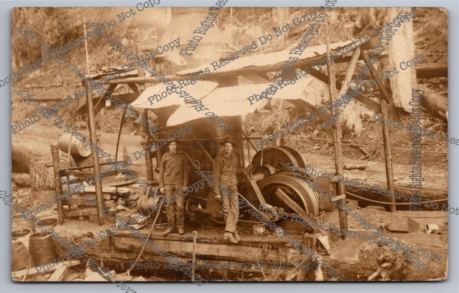 Antique RPPC 2 Men Stoke Boiler CCC Camp Gray's River Washington? Photo Postcard