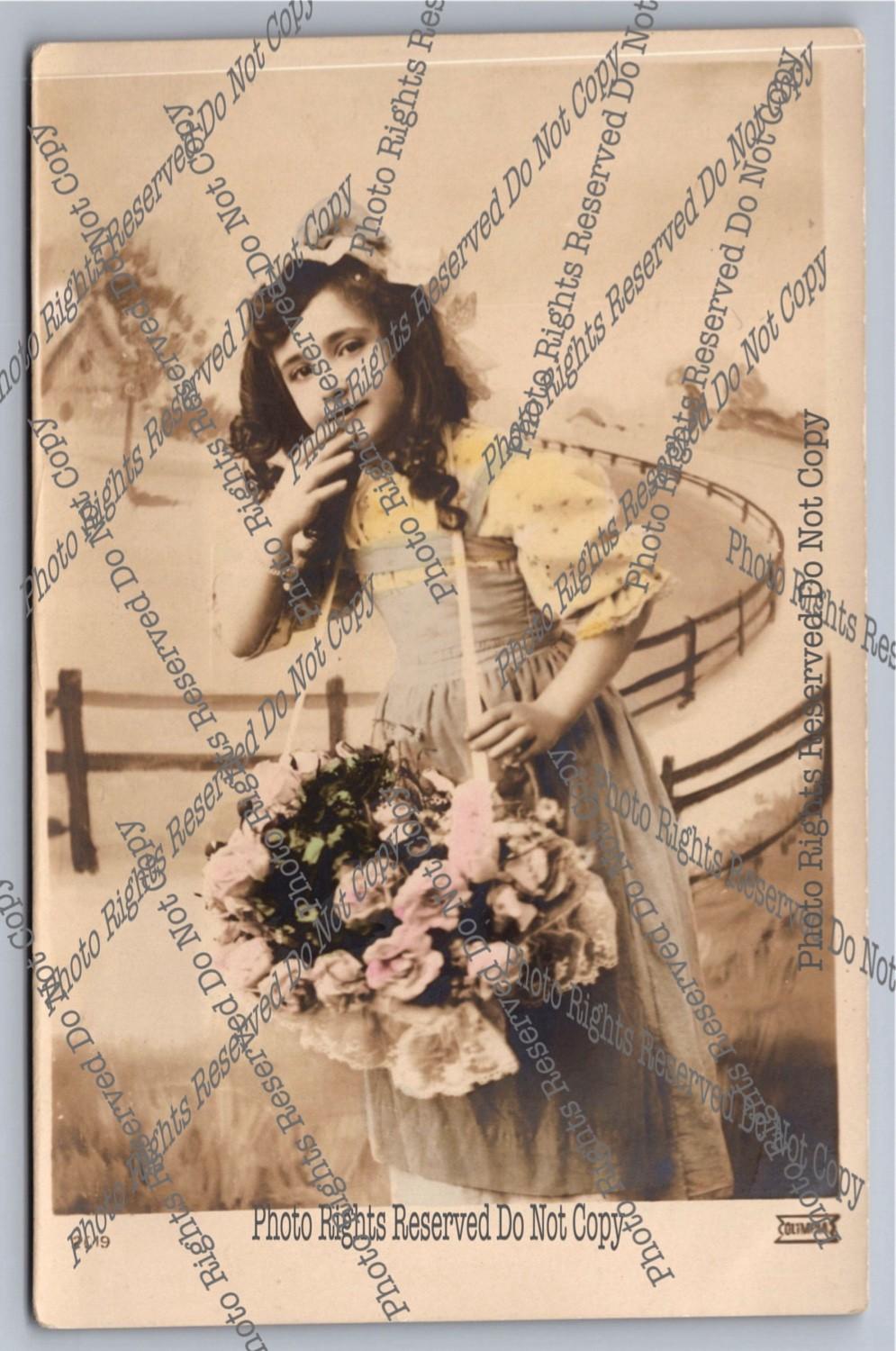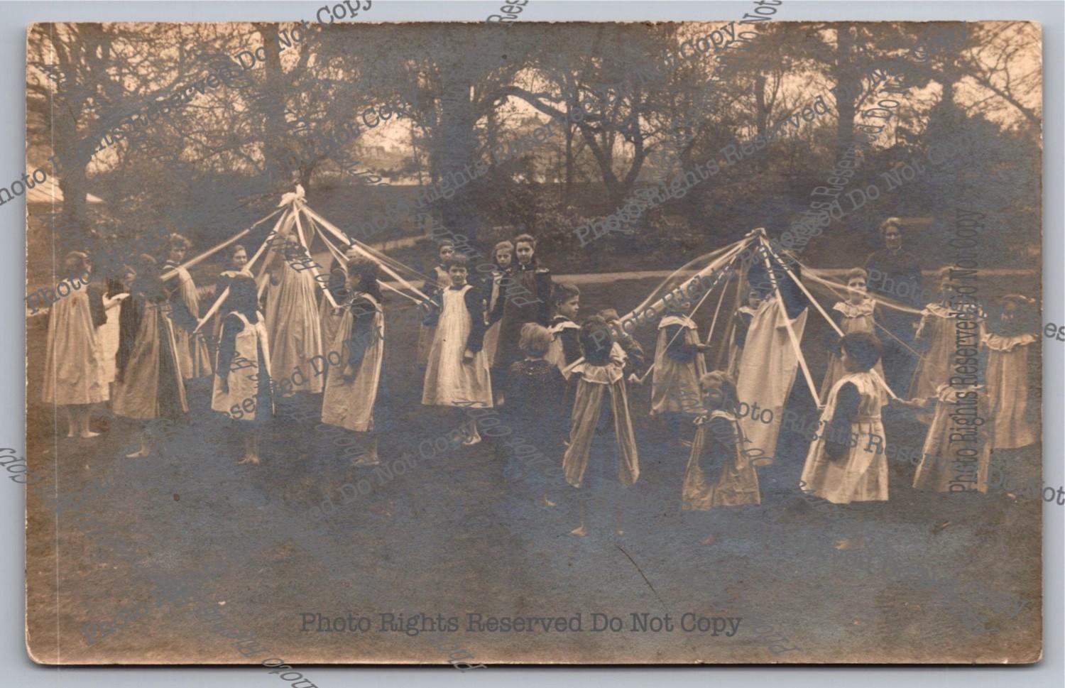 Antique RPPC Barefoot Girls Around 2 Maypoles Real Photo Postcard