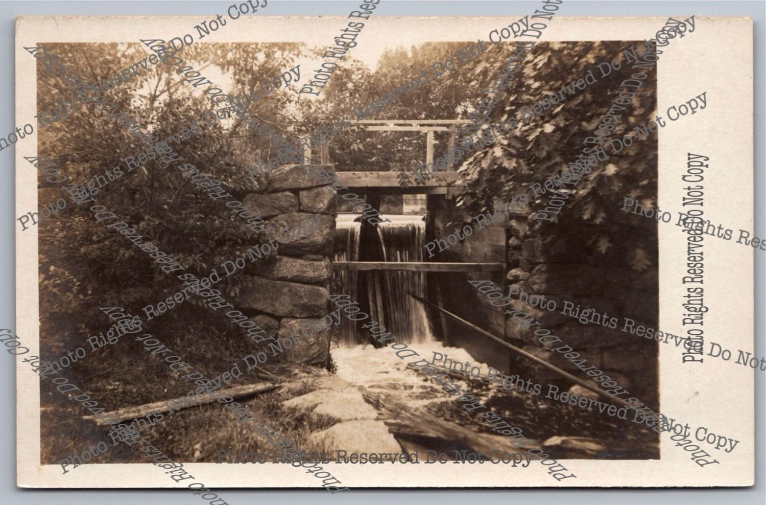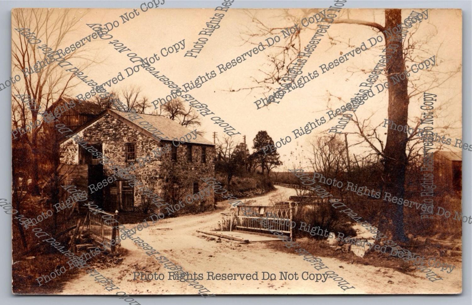 Antique RPPC Stone Mill Building Country Road Bridge Real Photo Postcard