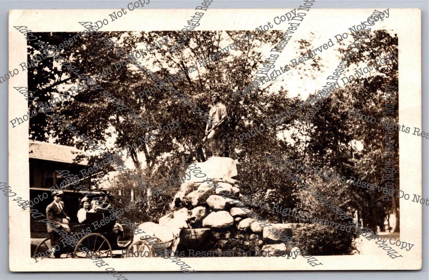 Antique RPPC Horse&Buggy at Lexington MA Minuteman Statue Real Photo Postcard