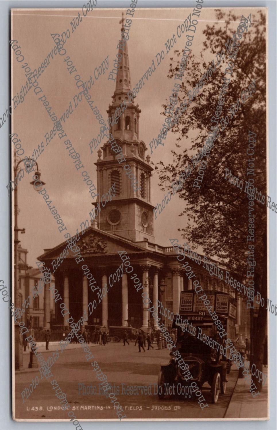 Antique RPPC London St. Martins / Bus with Advertising Real Photo Postcard