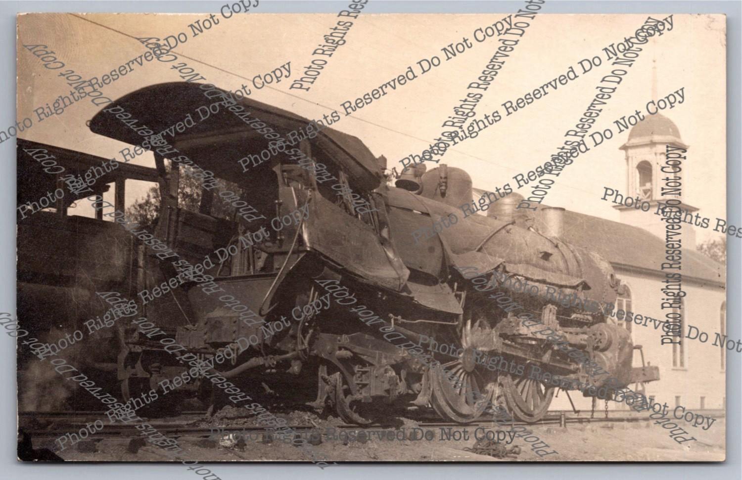 RPPC 1921 Heavily Damaged Steam Locomotive So. Berwick Maine Real Photo Postcard