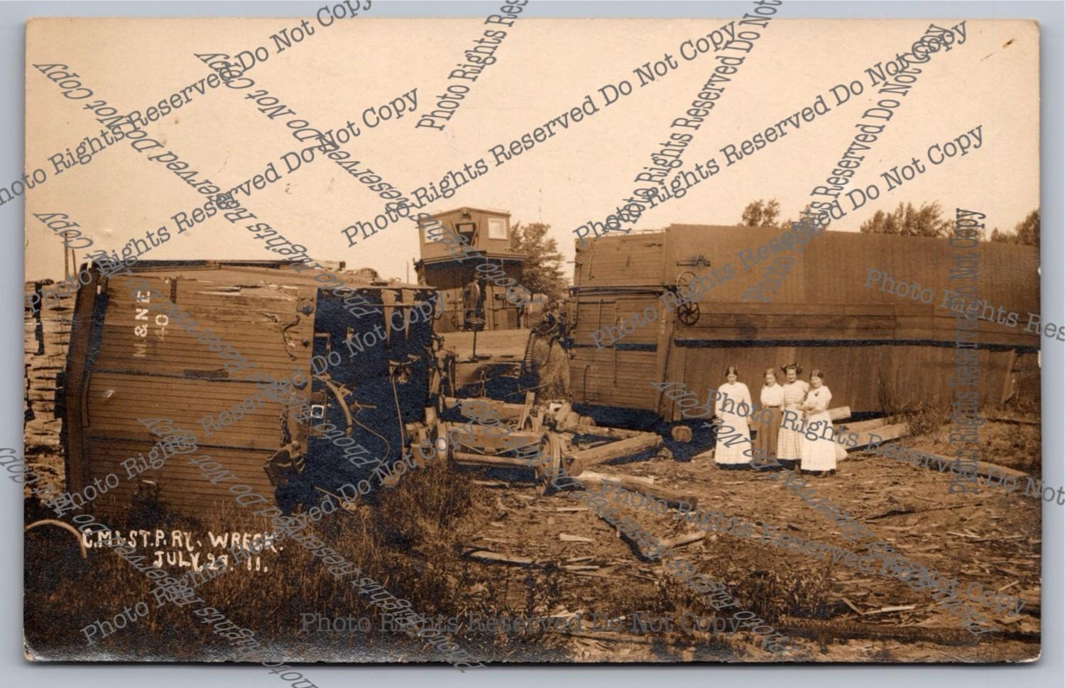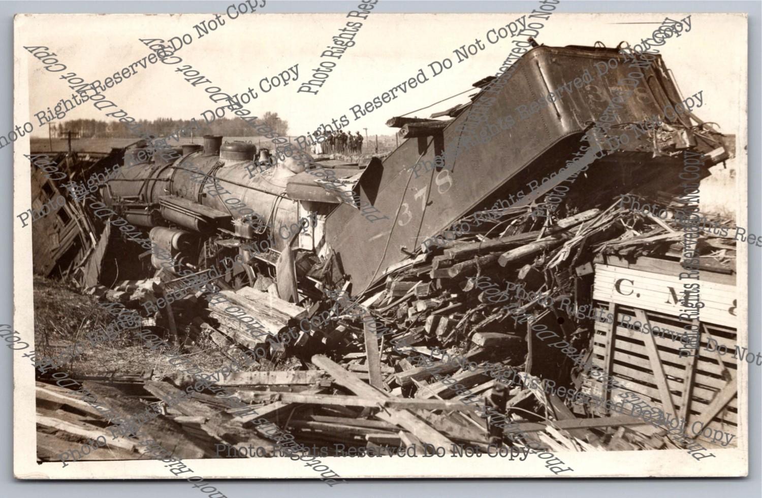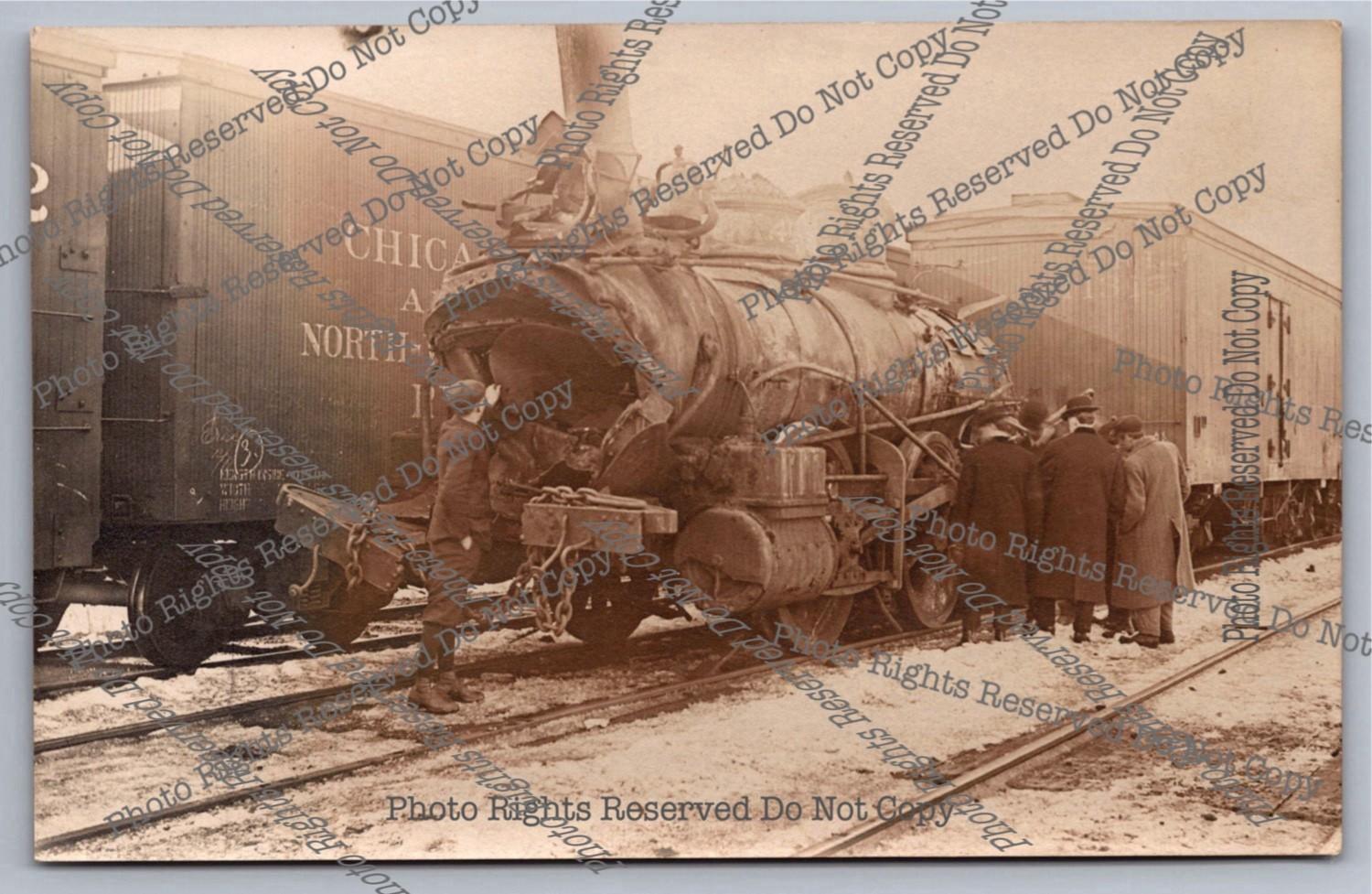 Antique 1911 Chicago Milwaulkee St Paul Train Wreck RPPC Real Photo Postcard