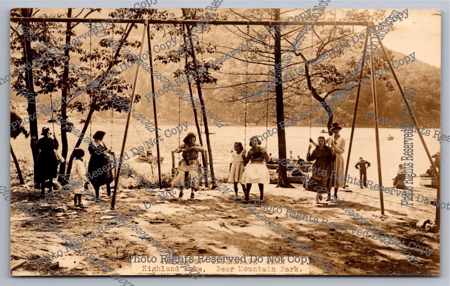 antq. RPPC swings NJ Palisades Interstate Park Highland Lake Real Photo Postcard