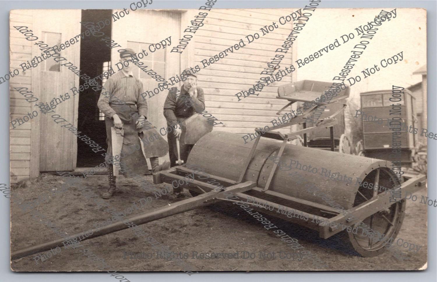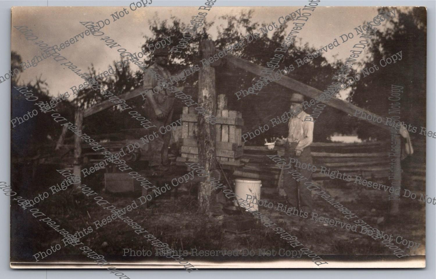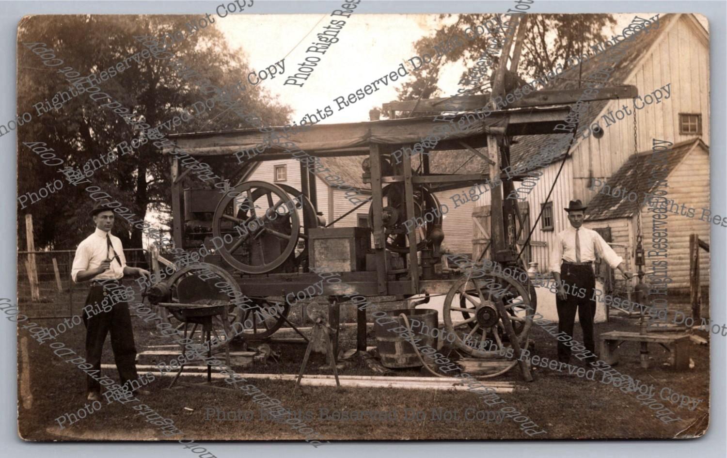 Antique RPPC 1914 Men Operate Well Digger On Wagon Adamville Real Photo Postcard