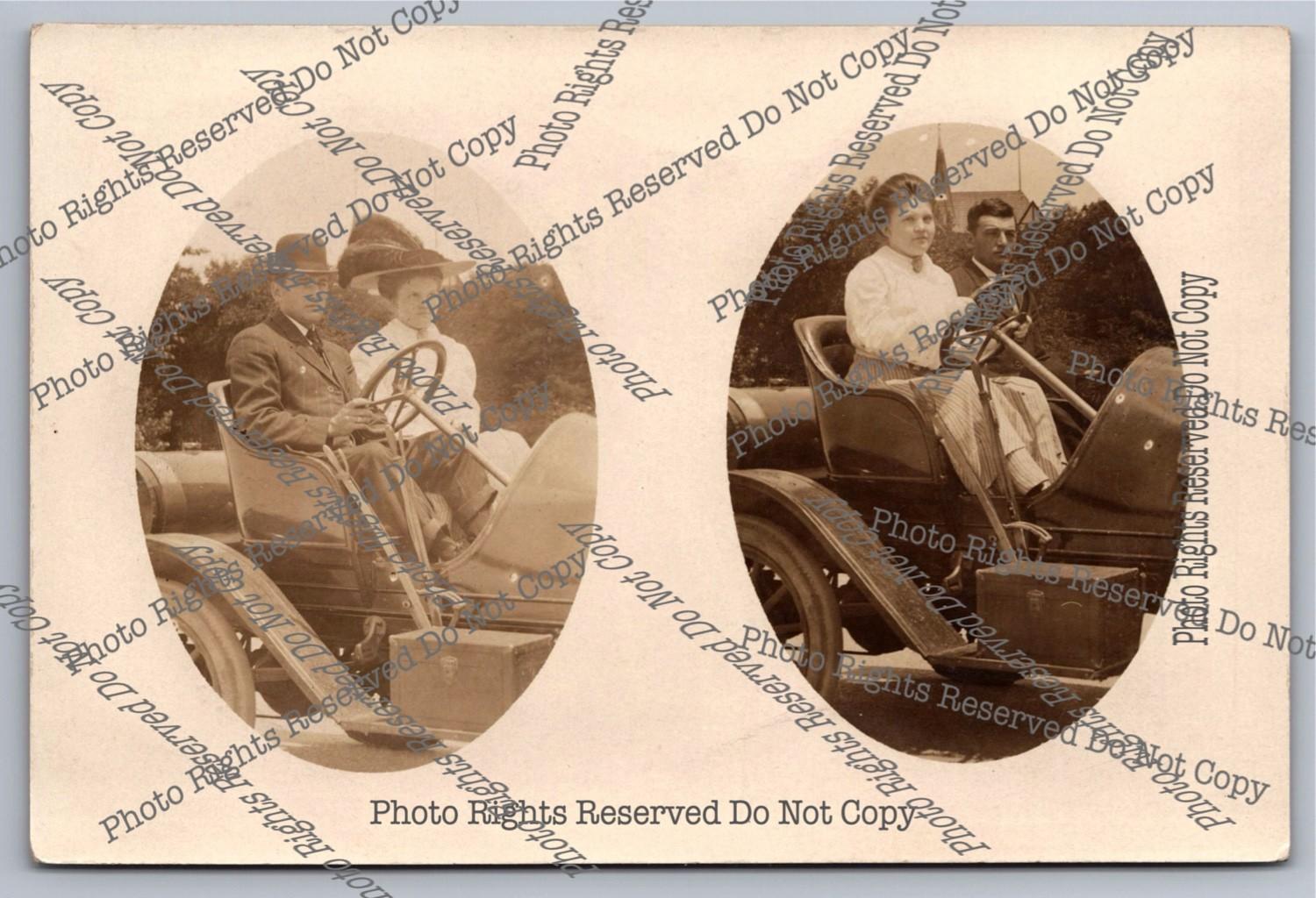 Antique RPPC Woman Drives 1910 Cadillac Model 30 NY License Real Photo Postcard