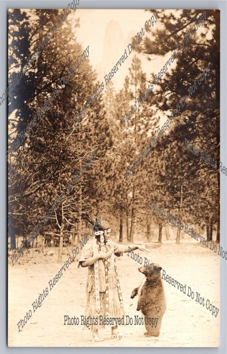 Vintage RPPC Yosemite Woman and Bear Cub Real Photo Postcard