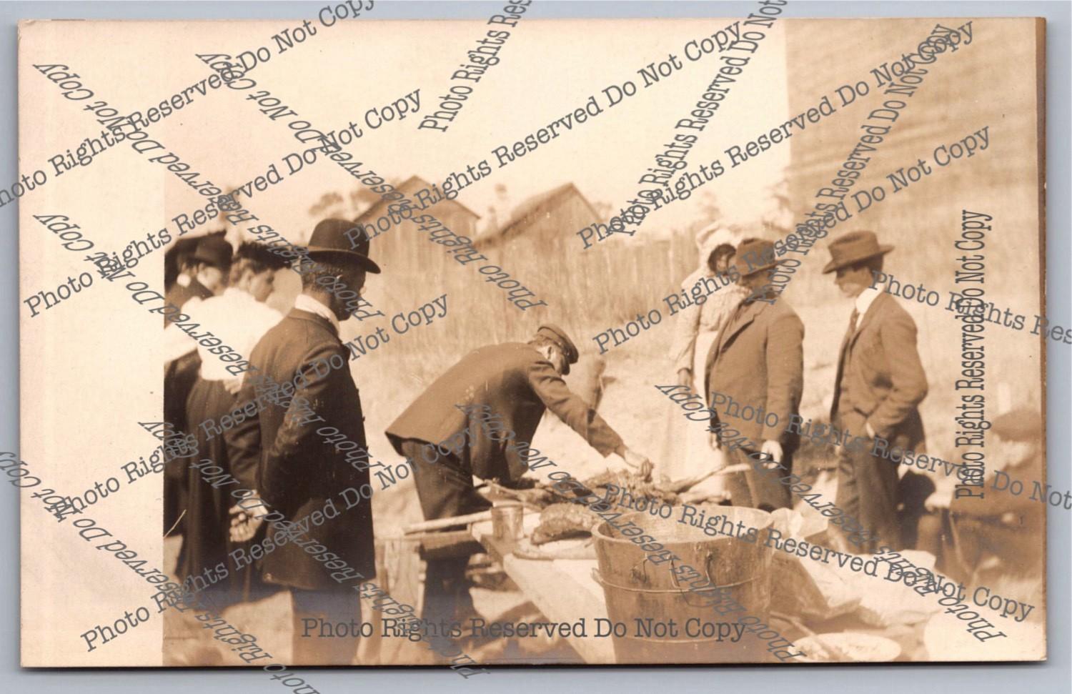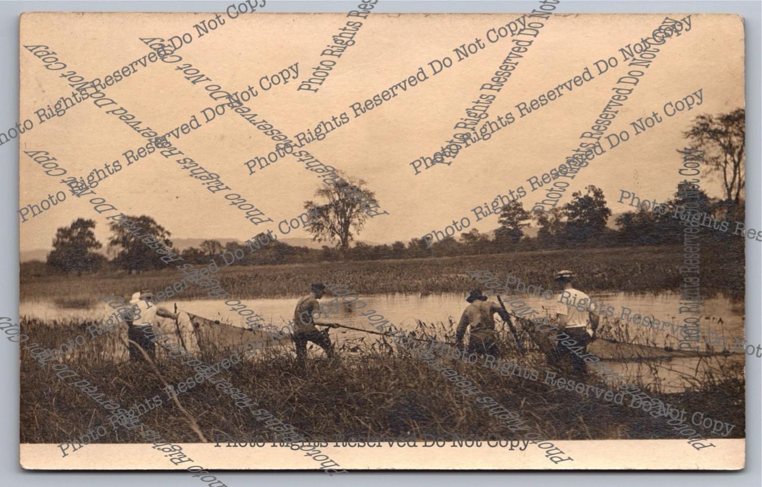 Antique RPPC Men Net Fishing Salt Marsh Real Photo Postcard