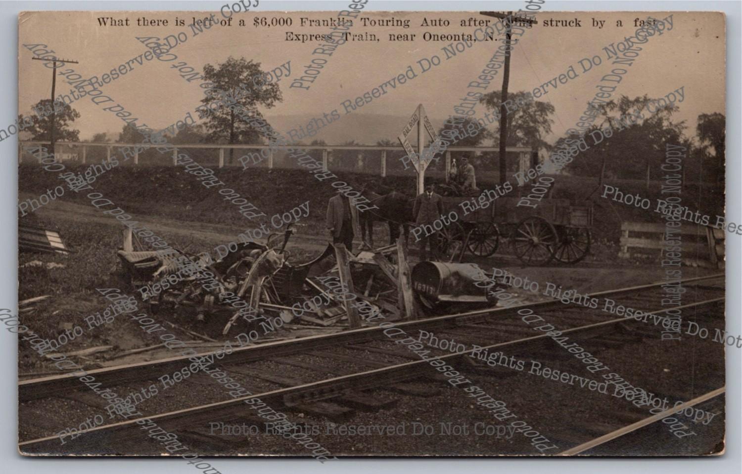 RPPC Franklin Touring Car Wreck Train Collision Oneonta NY real photo postcard