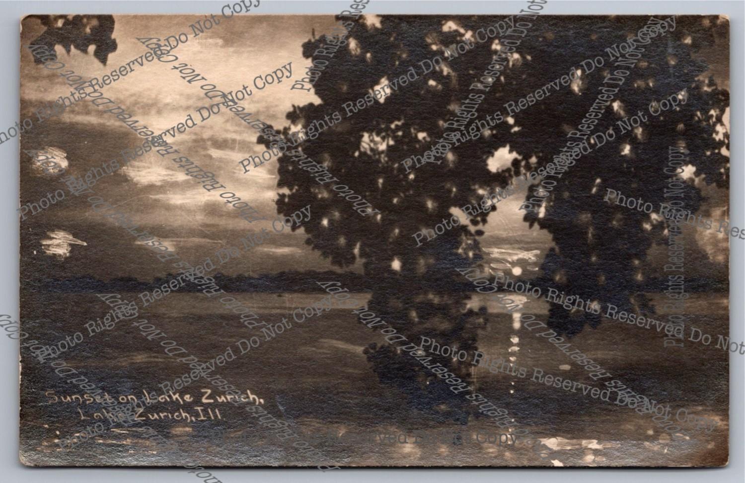 Antique 1921 RPPC Sunset Lake Zurich Illinois Real Photo Postcard