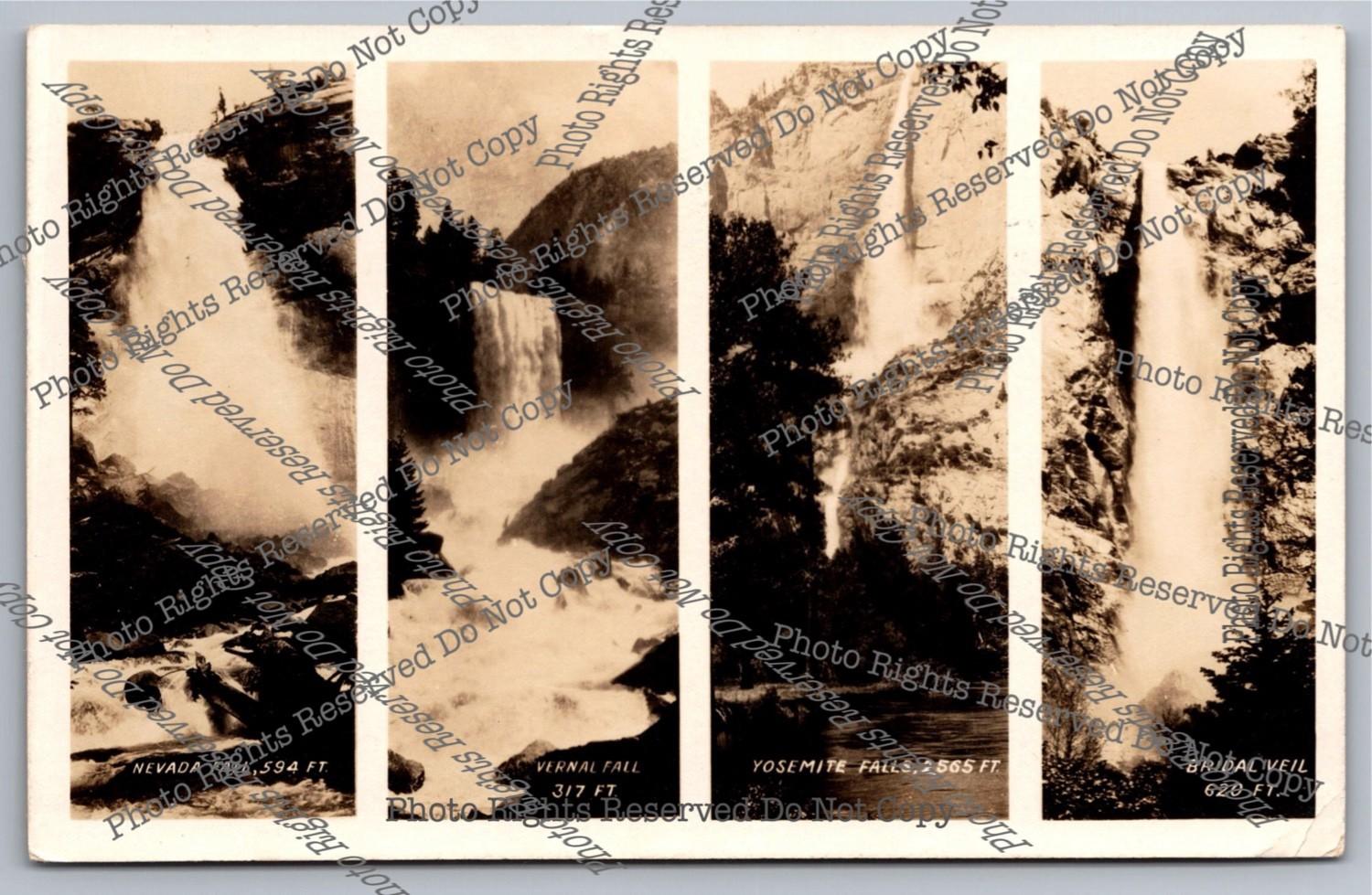 1924 RPPC Real Photo Postcard Nevada Fall Vernal Fall Yosemite Falls Bridal Veil