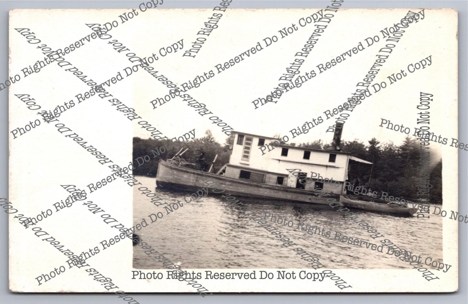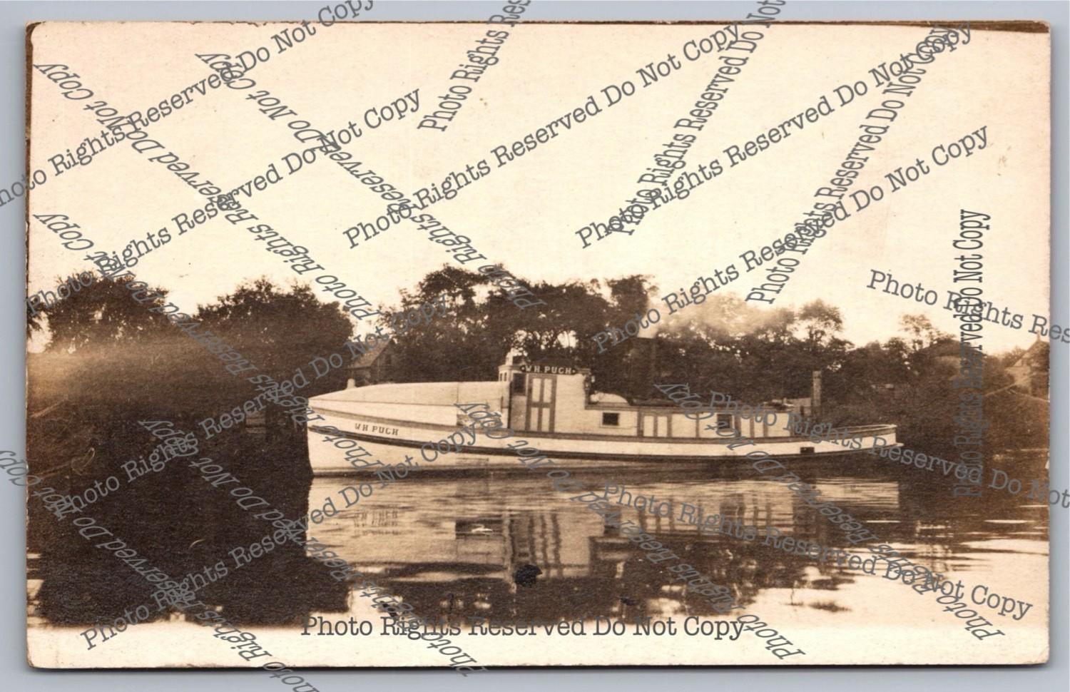 Antique RPPC Steam Tugboat? Houseboat?"W.H. Puch"Wisconsin Real Photo Postcard