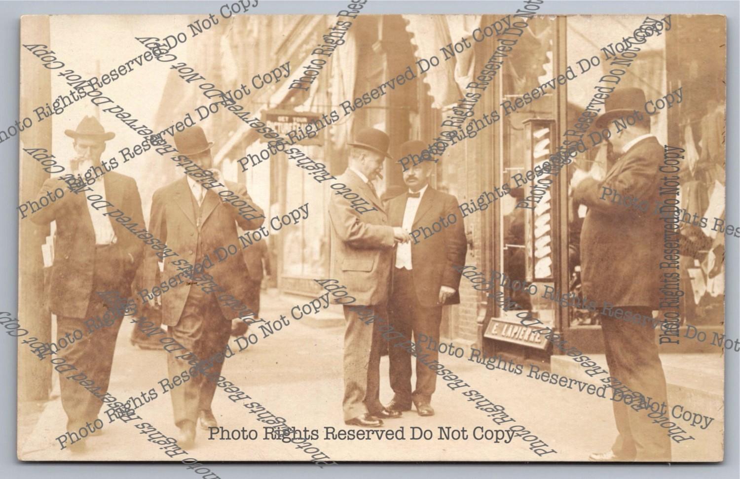 Antique RPPC City Street Scene Men Smoke Cigars Talk Real Photo Postcard