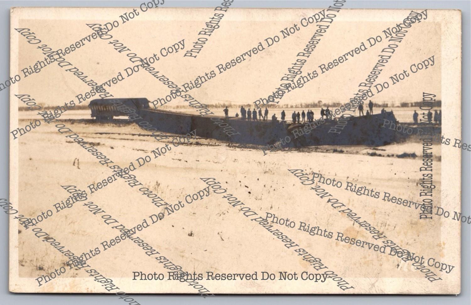 Antique RPPC Derailed Train&Onlookers Snowy Plains Real Photo Postcard