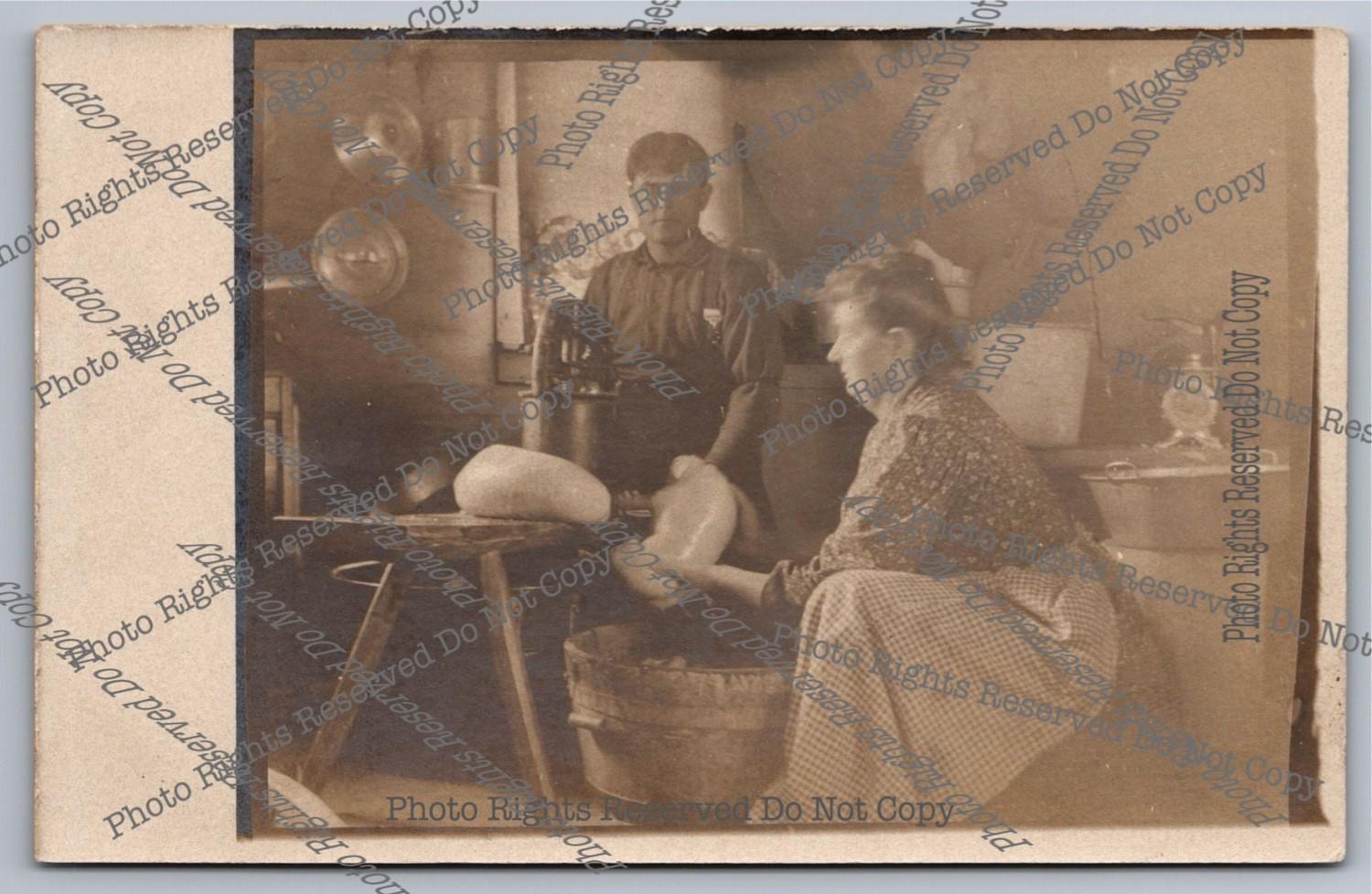 Antique RPPC Grandma On Porch Water Pump Brass Era Auto Car Real Photo Postcard