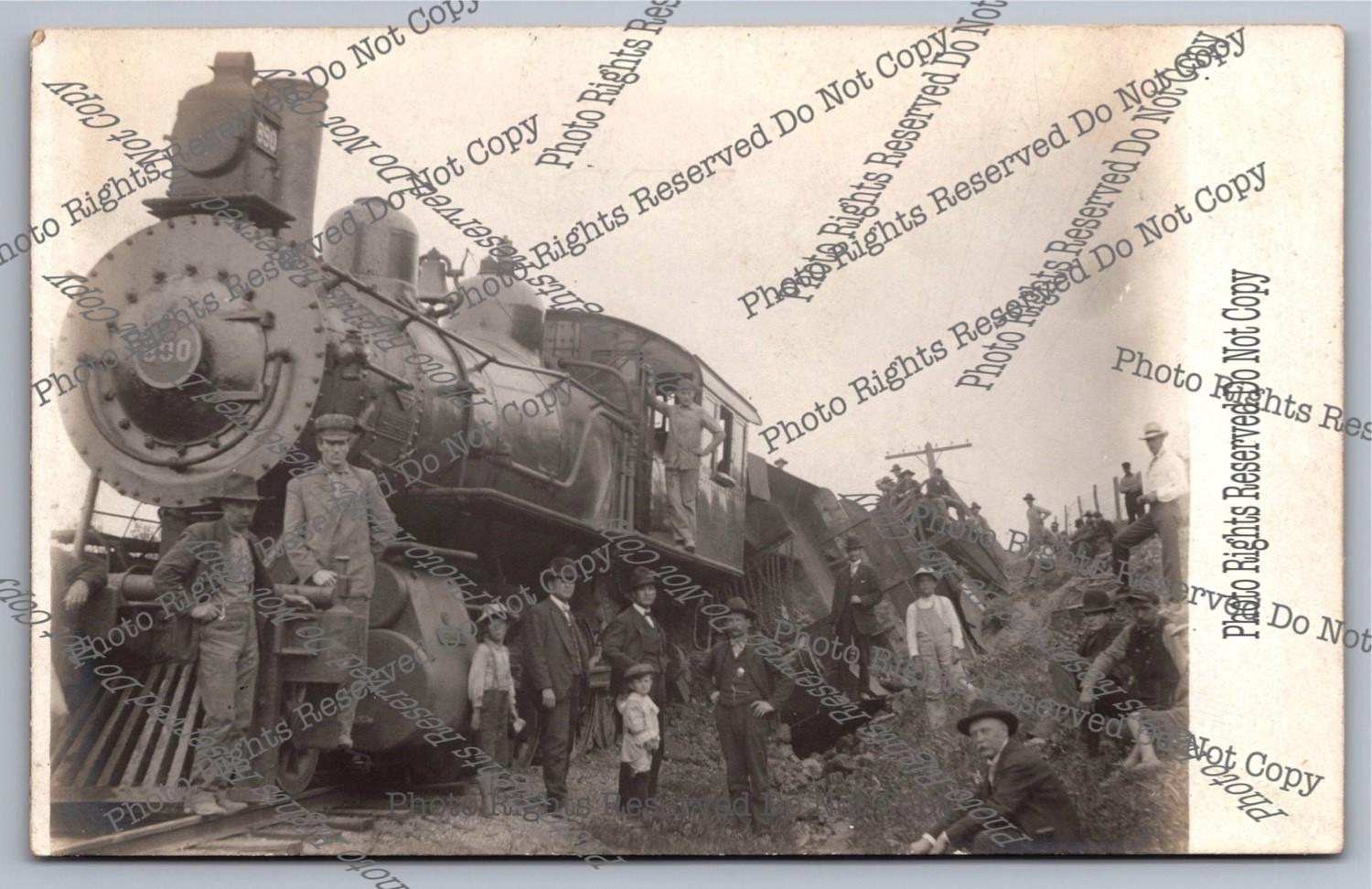 Antique RPPC Steam Locomotive 890 Rail Derailment Spectators Real Photo Postcard