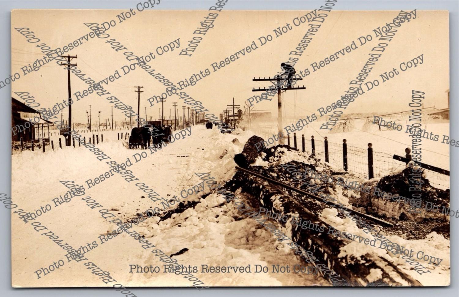 Antique RPPC Ice Storm Downed Powerline Repair? Snowy Road Real Photo Postcard
