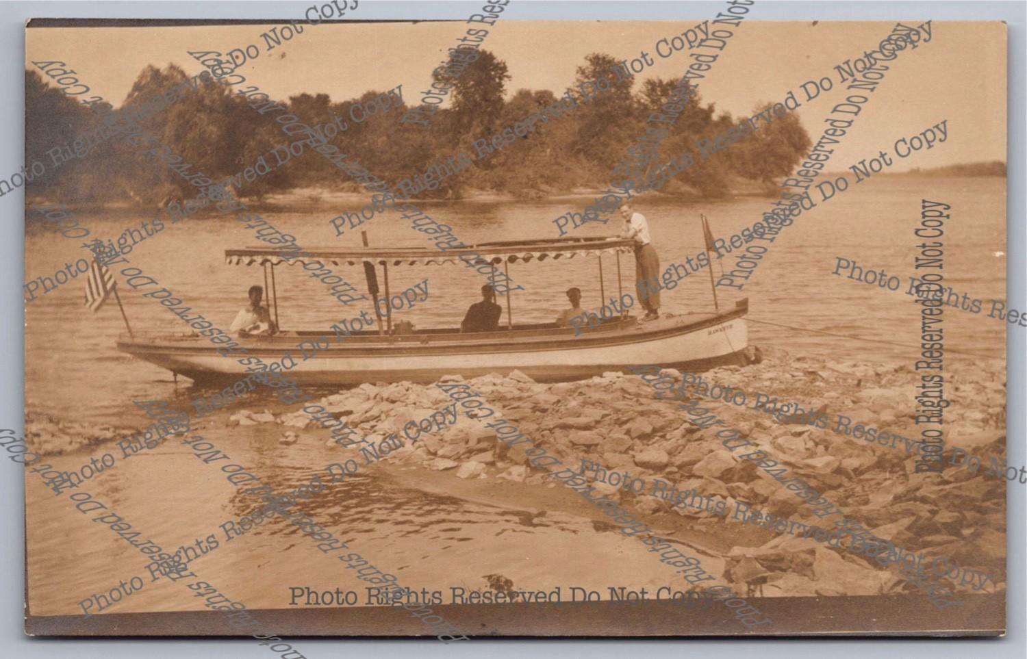 Antique RPPC Motorboat"Hawkeye"4 Guys Chillin Real Photo Postcard