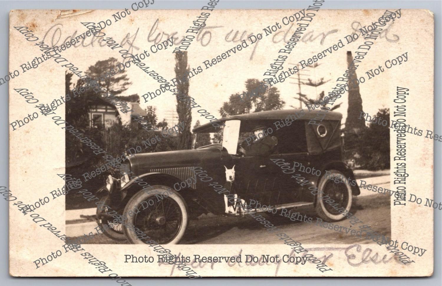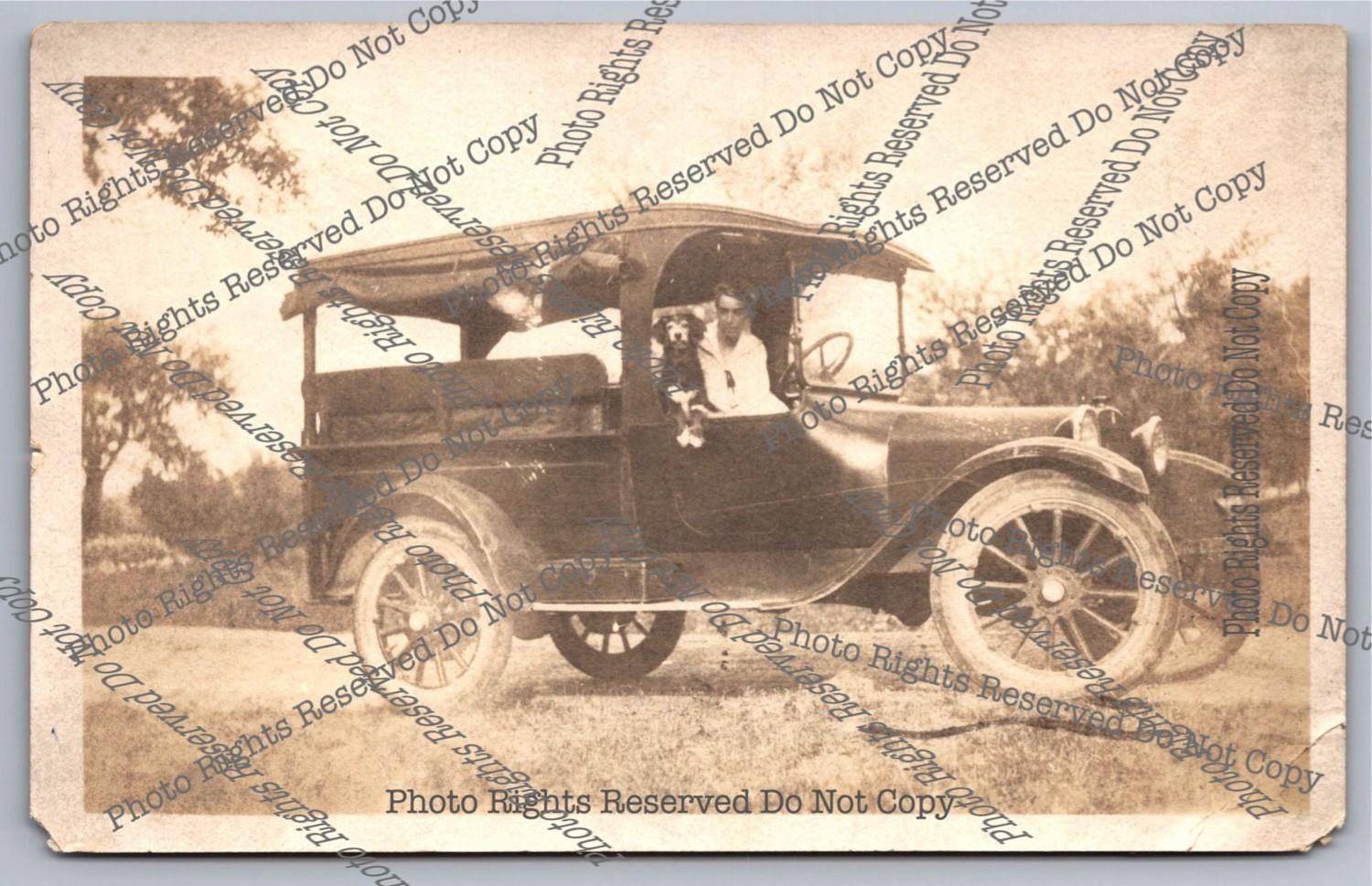 Antique 1922 RPPC Dodge Brothers Bus Dog Pontiac Michigan Real Photo Postcard
