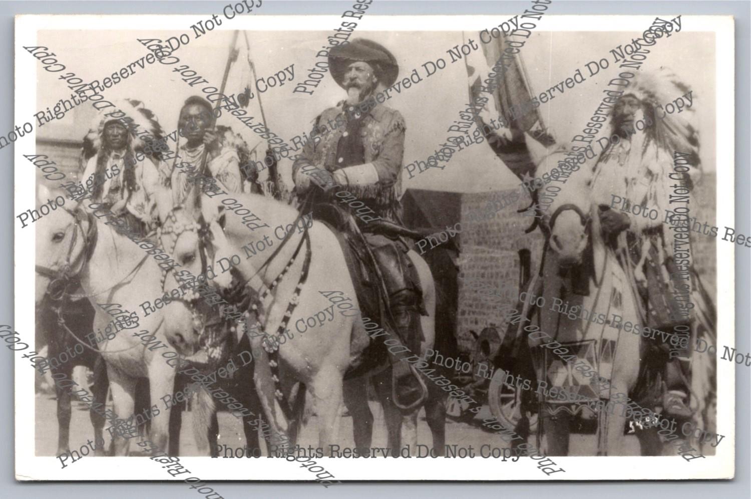 Vintage RPPC reprod. photo Buffalo Bill&Native Americans Real Photo Postcard
