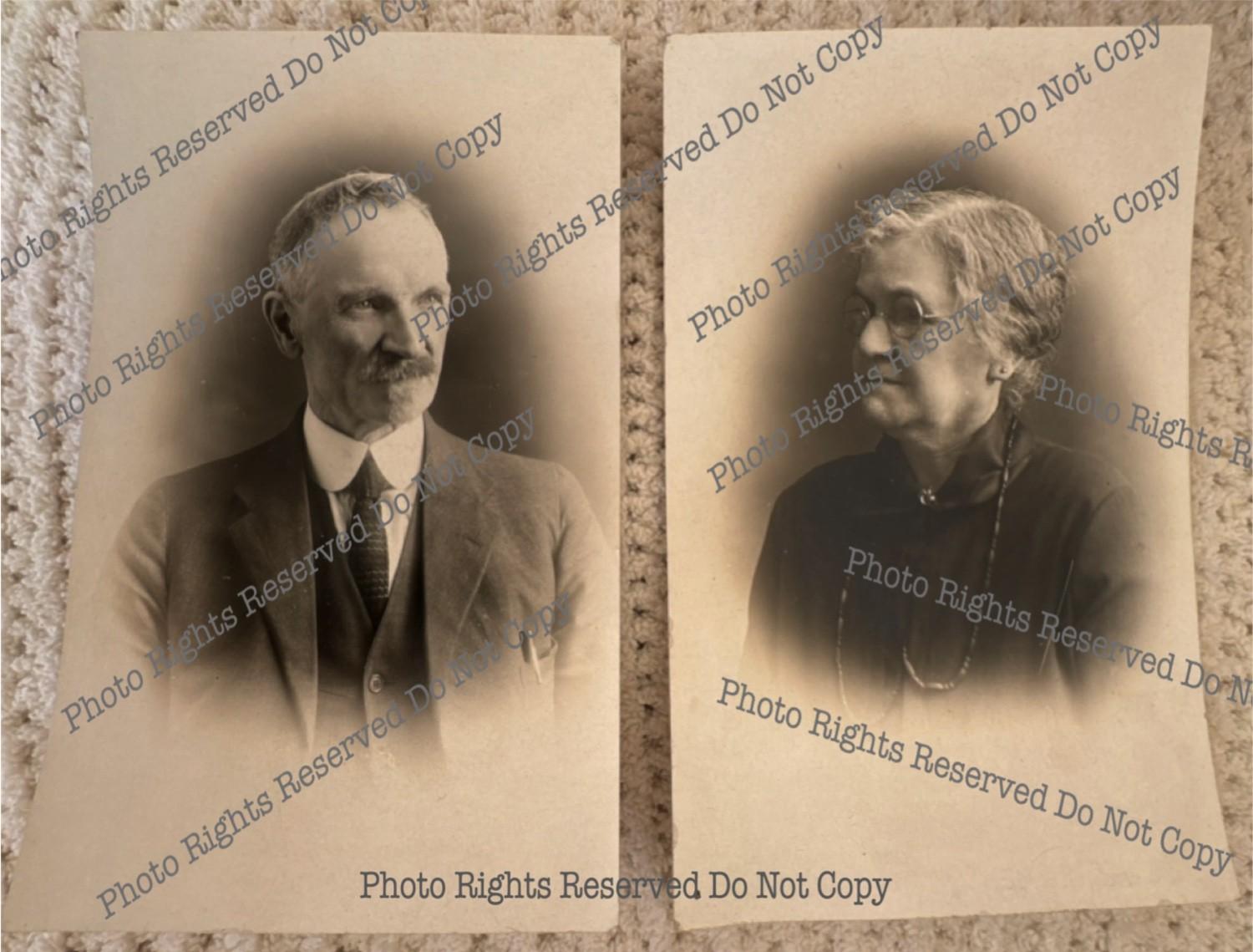 2 antique RPPC elderly man and woman - estate item - real photo postcard