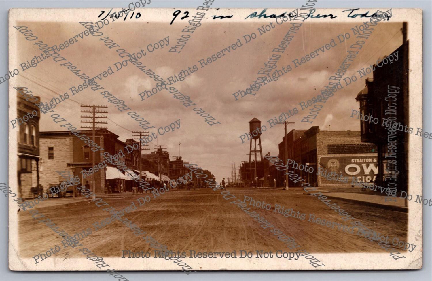 Antique 1910 RPPC Main St. USA Owl Cigar Sign water tower Real Photo Postcard