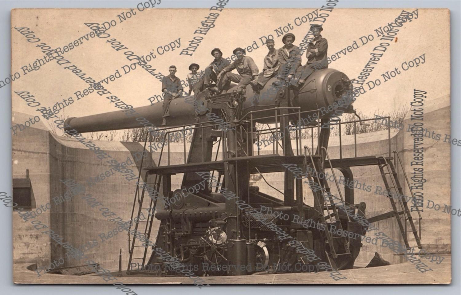 Antique RPPC Disappearing Gun Crew Atop Fort Williams? Real Photo Postcard