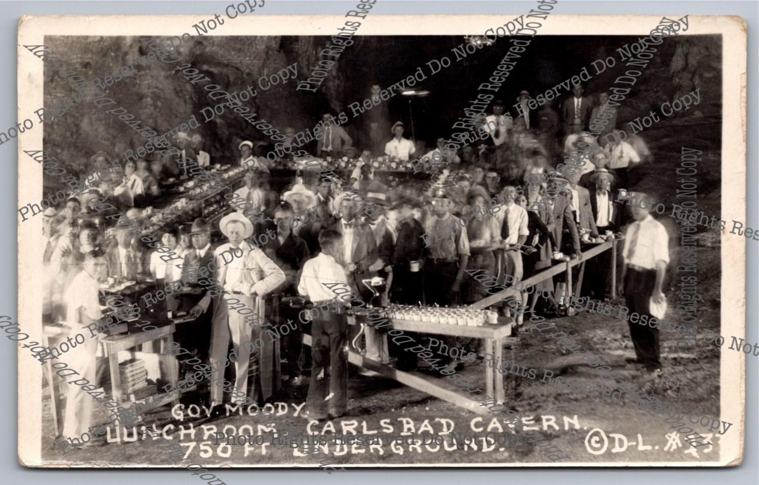 Vintage RPPC Real Photo Postcard Lunch Room Carlsbad Cavern Texas Governor Moody