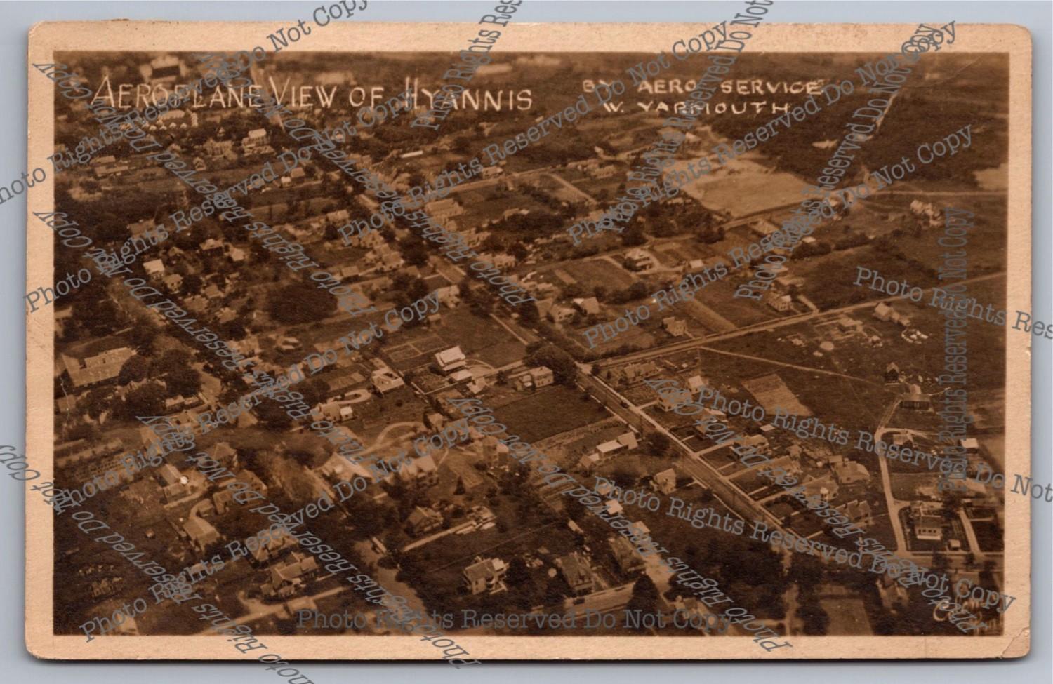 Antique 1920 RPPC Aeroplane View of Hyannis Aerial Real Photo Postcard