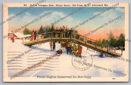 Vintage Postcard 1943 End Of Toboggan Slide Winter Sports Old Forge New York
