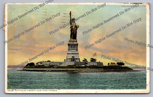 Antique Postcard 1910 Statue Of Liberty New York Harbor