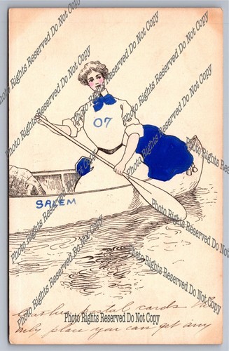 Antique Postcard 1907 Salem Massachusetts woman rowing canoe female rower
