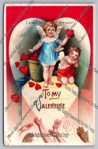 Antique Postcard 1911 Clapsaddle Valentine Cherubs Hearts"I Want To Die Poor"